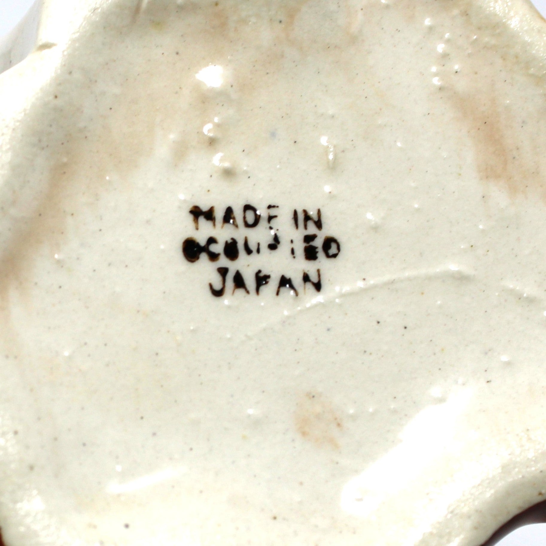 - Details: This is such a cute planter, could be a toothpick holder, a mini vase, even serves to hold cotton swabs in baby's room, but however you use it, it's delightful and highly collectible. Shaped like a young deer, standing by a tree trunk and has a soft color palette of white, blue and brown. There are black letters in the center but we can't make out what it says. There are a couple of condition issues, please see below for details. It is marked on the bottom "Made in Occupied Japan".