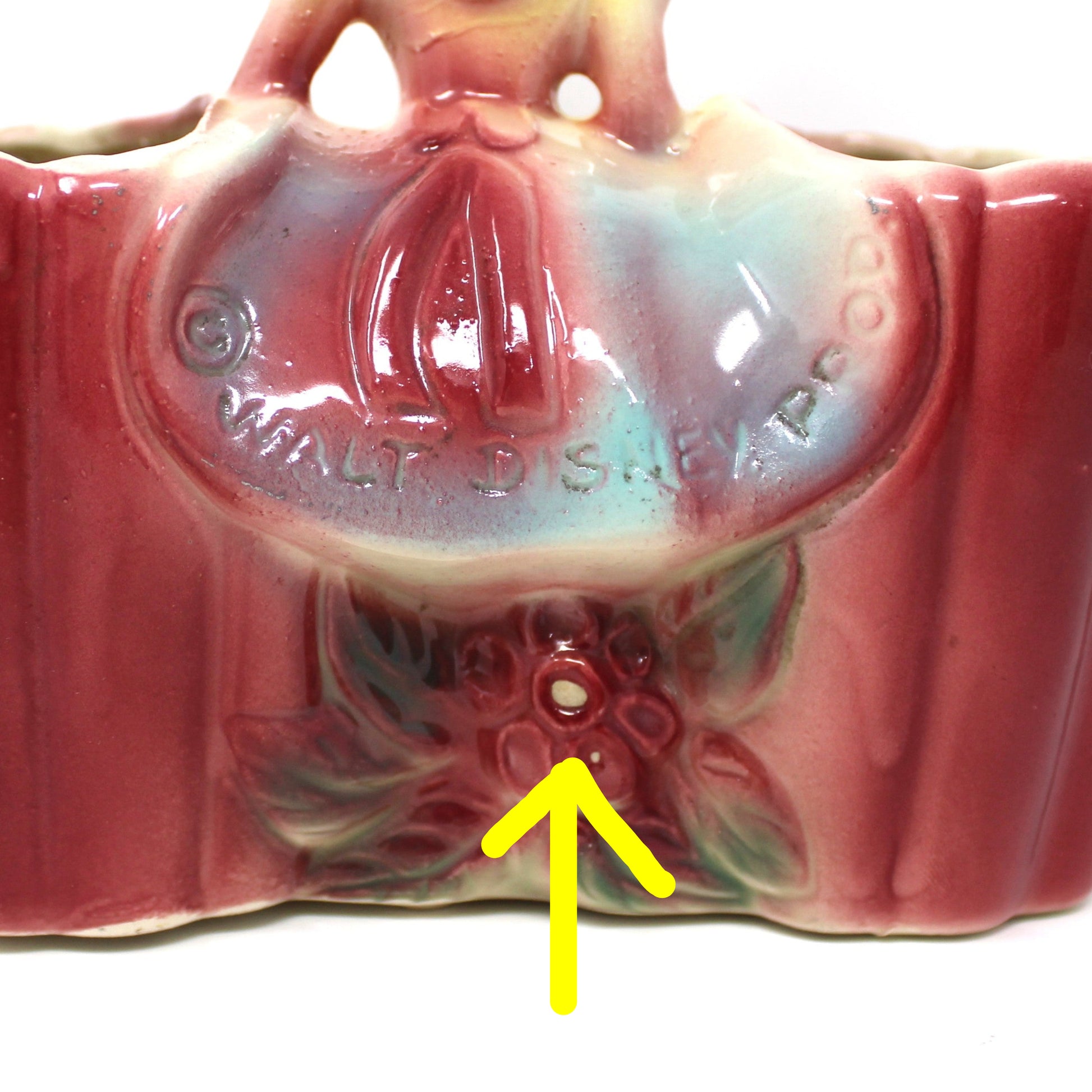 - Details: This is an amazing Disneyana find!! Vintage Walt Disney Productions Alice in Wonderland double planter in wonderful condition!! It is hand painted, this one in a pink tone, we understand these were also made in Blue, Green and Yellow. Made by Leeds China (1944 - 1954) in Chicago, IL and marked "Walt Disney Prod" on the back. Disney is highly collectible and this double planter is extremely rare. A great addition to your collection or as a most generous gift.