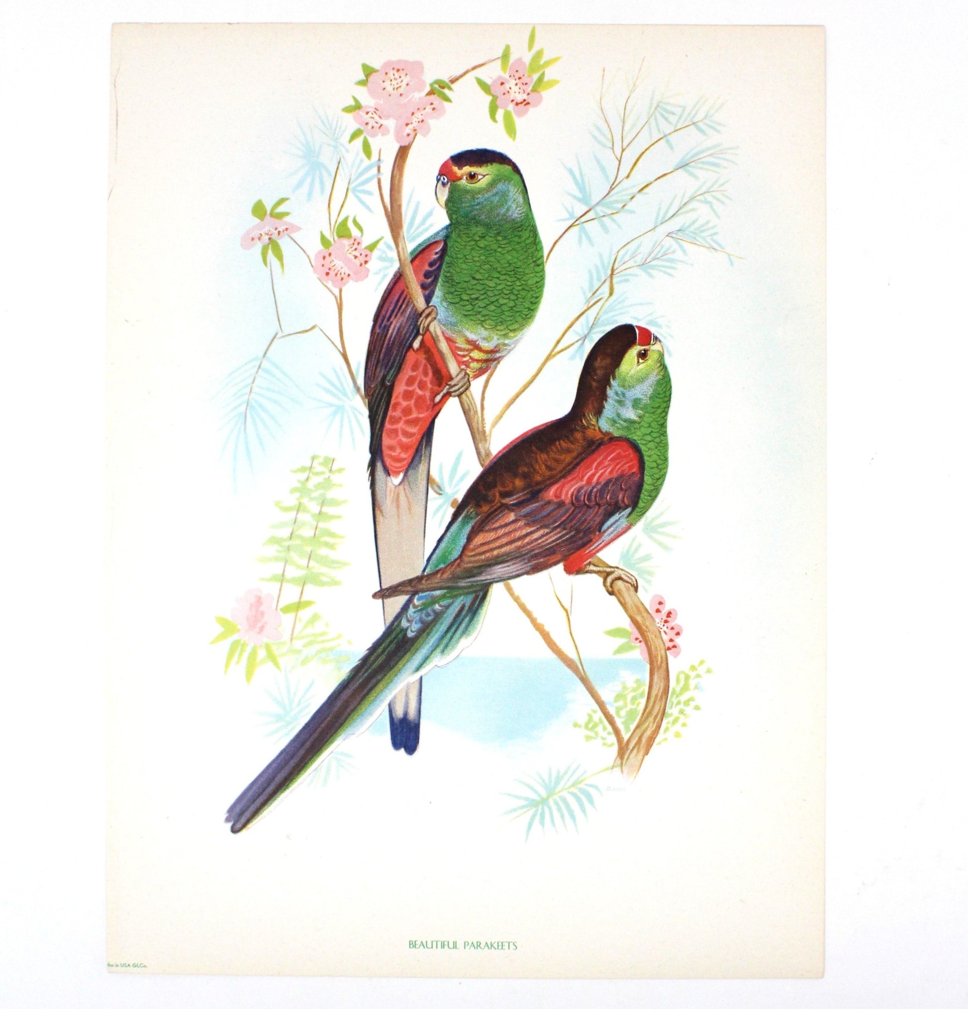 - Vintage Lithograph Print, Beautiful Parakeets / Paradise Parrots by John Gould. GLCO Litho, Birds, Ephemera, Frameable Art, Home Decor, Extinct Birds, Bird Lovers, Tropical Birds, (Discontinued)