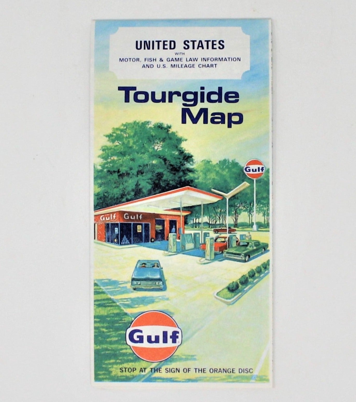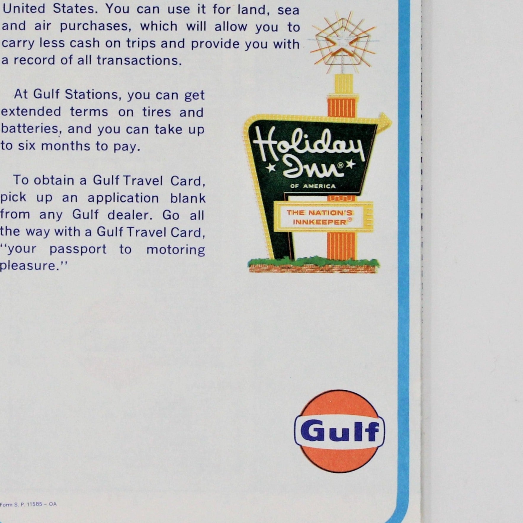 - Details: Lots of history in this map! Made by Rand McNally, the number one name in maps, it is for the entire continental United States, Alaska and Hawaii. On the cover, the "orange disk" logo for Gulf Gas and a wonderful retro image in bright colors. Inside it's fun to look at the price of Motor, Fish, and Game licenses and laws of the time. The back cover advertises their new "Gulf Travel Card" and there's a wonderful Holiday Inn logo. This map is in absolutely wonderful condition, the perfect gift for a collector, whether collecting for nostalgia, a gas station collection, history, map makers, or memories of places traveled, there are many reasons to start, or continue, this great and relatively inexpensive hobby. If this is your hobby, we hope this map brings you joy.