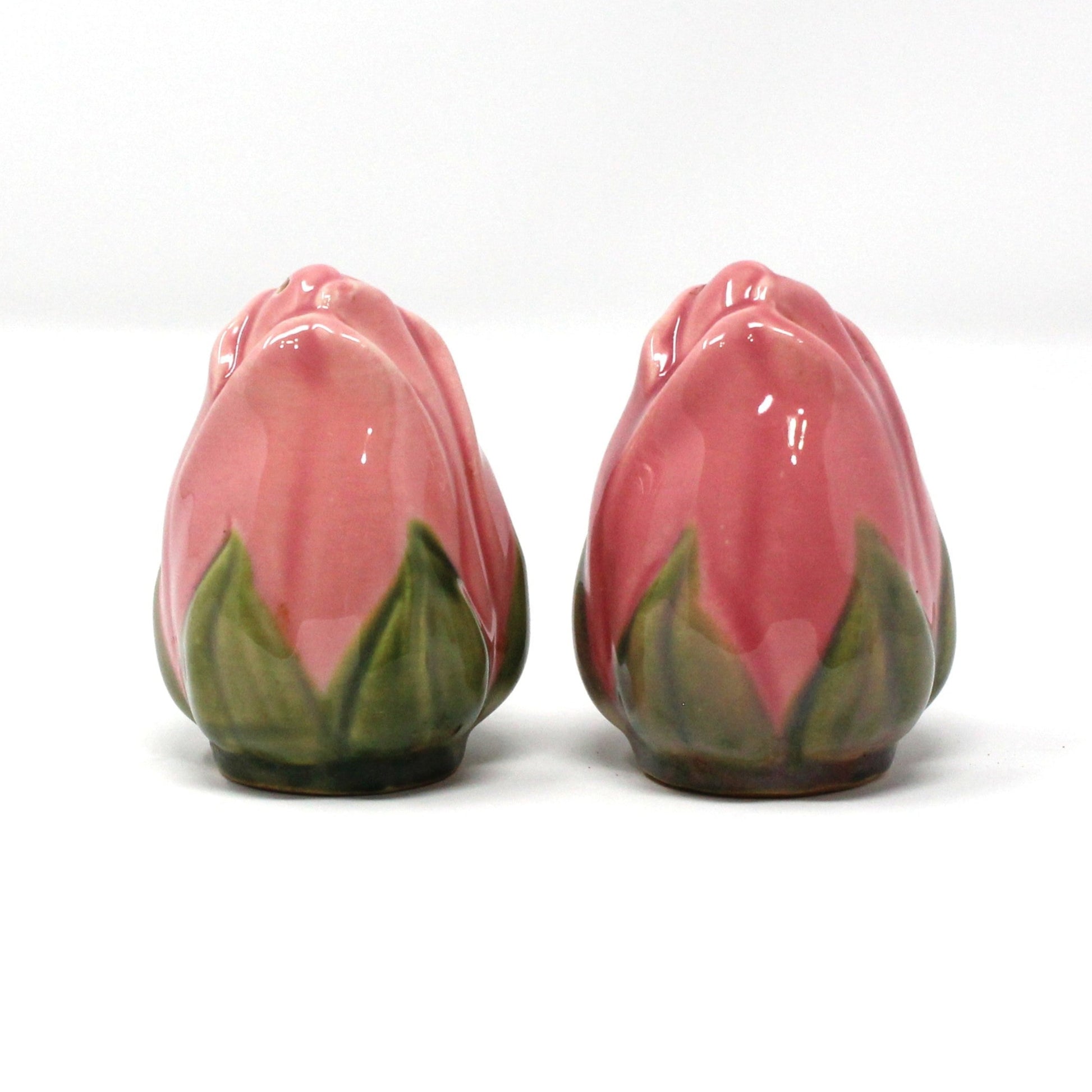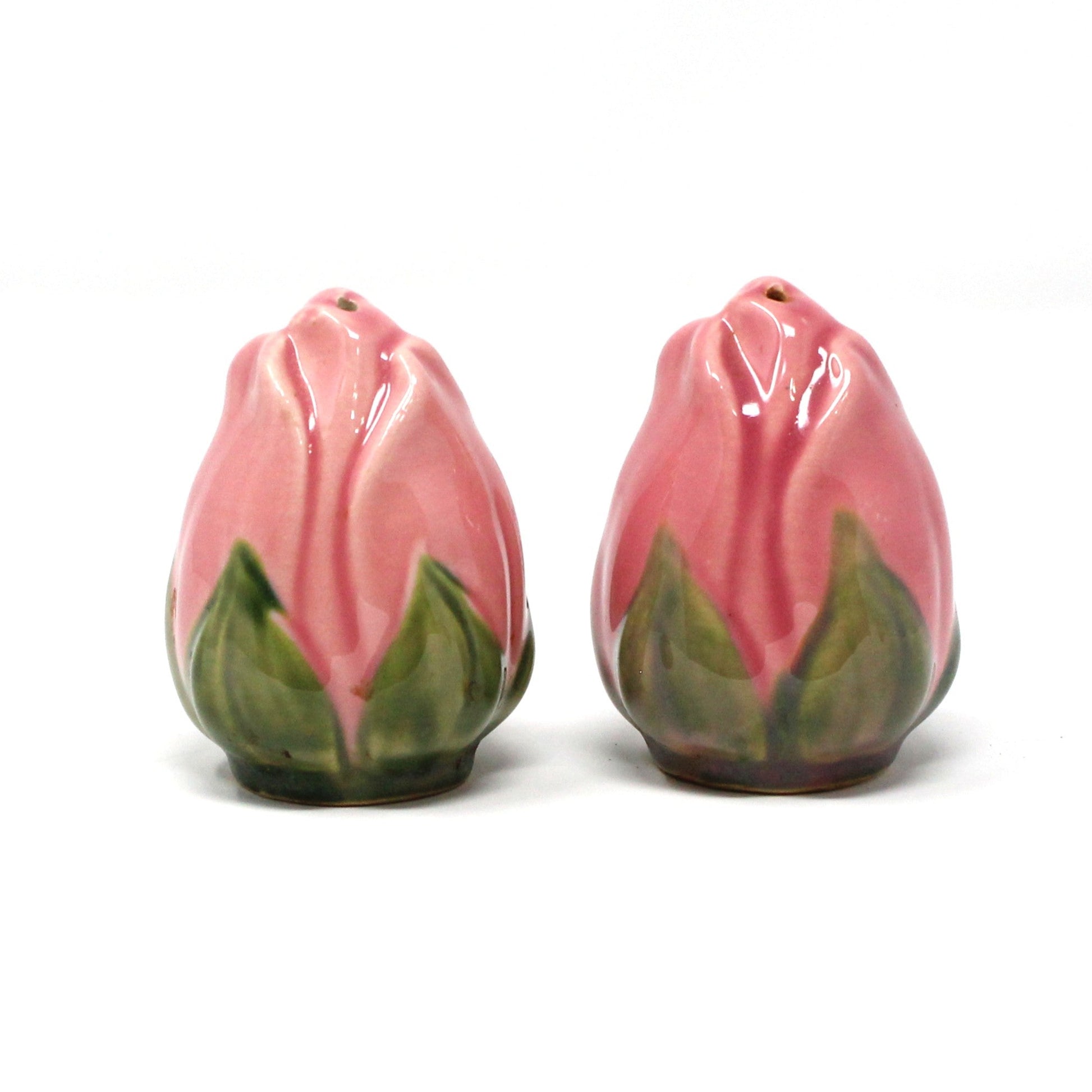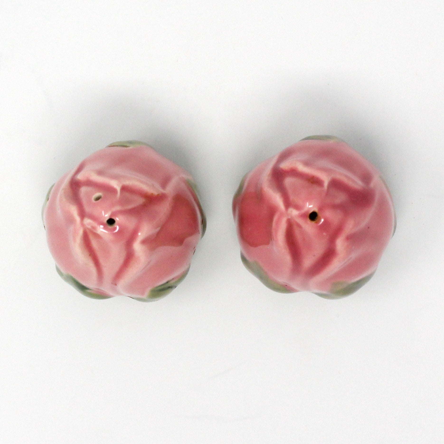 - Details: This is a sweet set of salt and pepper shakers, featuring the classic pink floral pattern called Desert Rose, introduced in 1941. They are shaped like rose buds in pink and green. These are the original Gladding McBean, they look very early, most likely 1950's, (prior to Interpace take-over in 1962). Hand washing in recommended since they are old, these are hand painted. The floral theme is great for Spring and Summer get togethers,, Mother's Day, even Tea time! We also carry several Complete Place Settings, Serving Pieces, plus the Creamer & Sugar Set in this pattern, while supplies last.