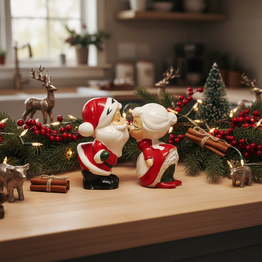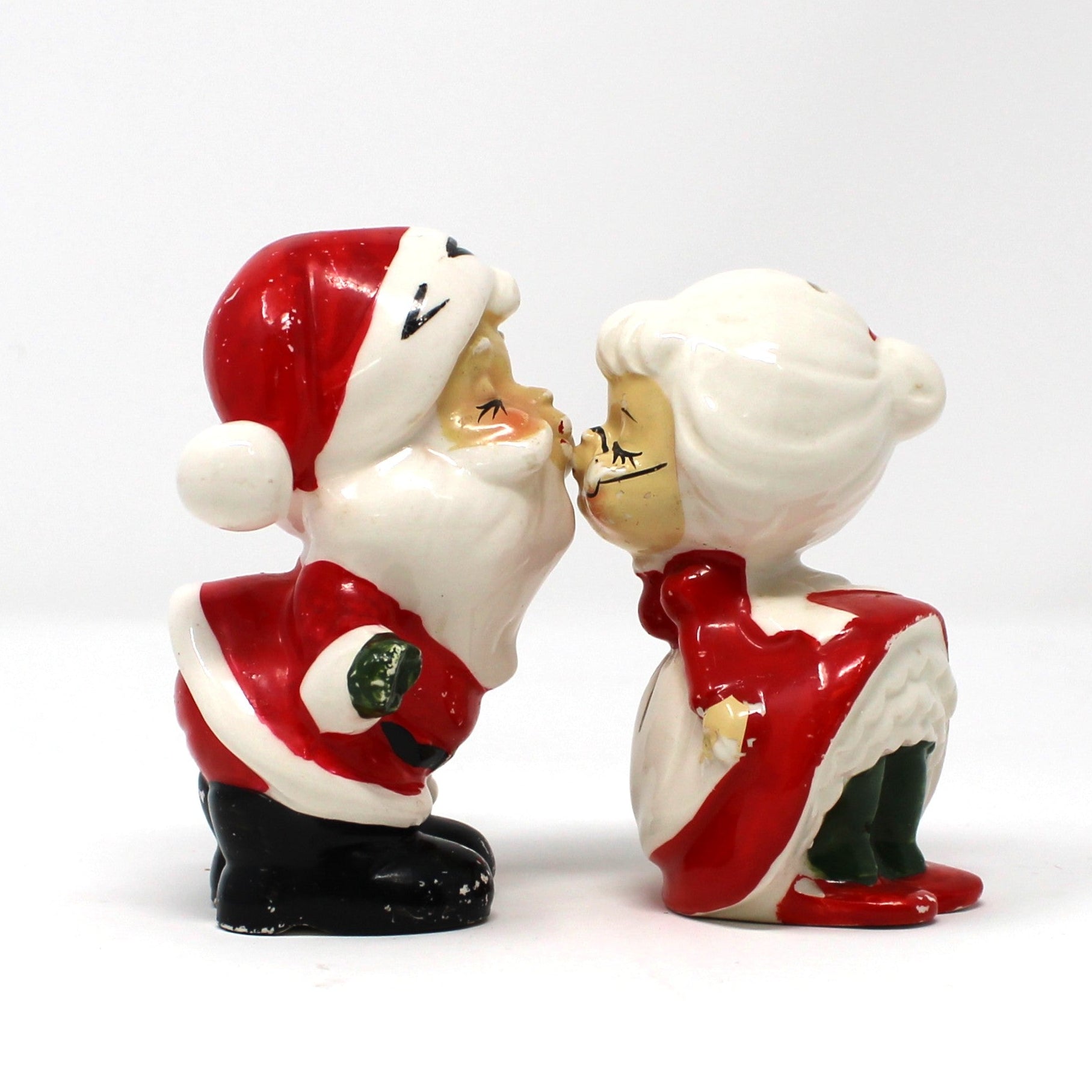 - Vintage Christmas Salt & Pepper Shakers, Kissing Santa and Mrs Claus, Mid Century Holiday Tableware, Christmas Serveware, Kitchen Decor, Collectibles, Hand Painted Porcelain, Japan Imports, (Discontinued)