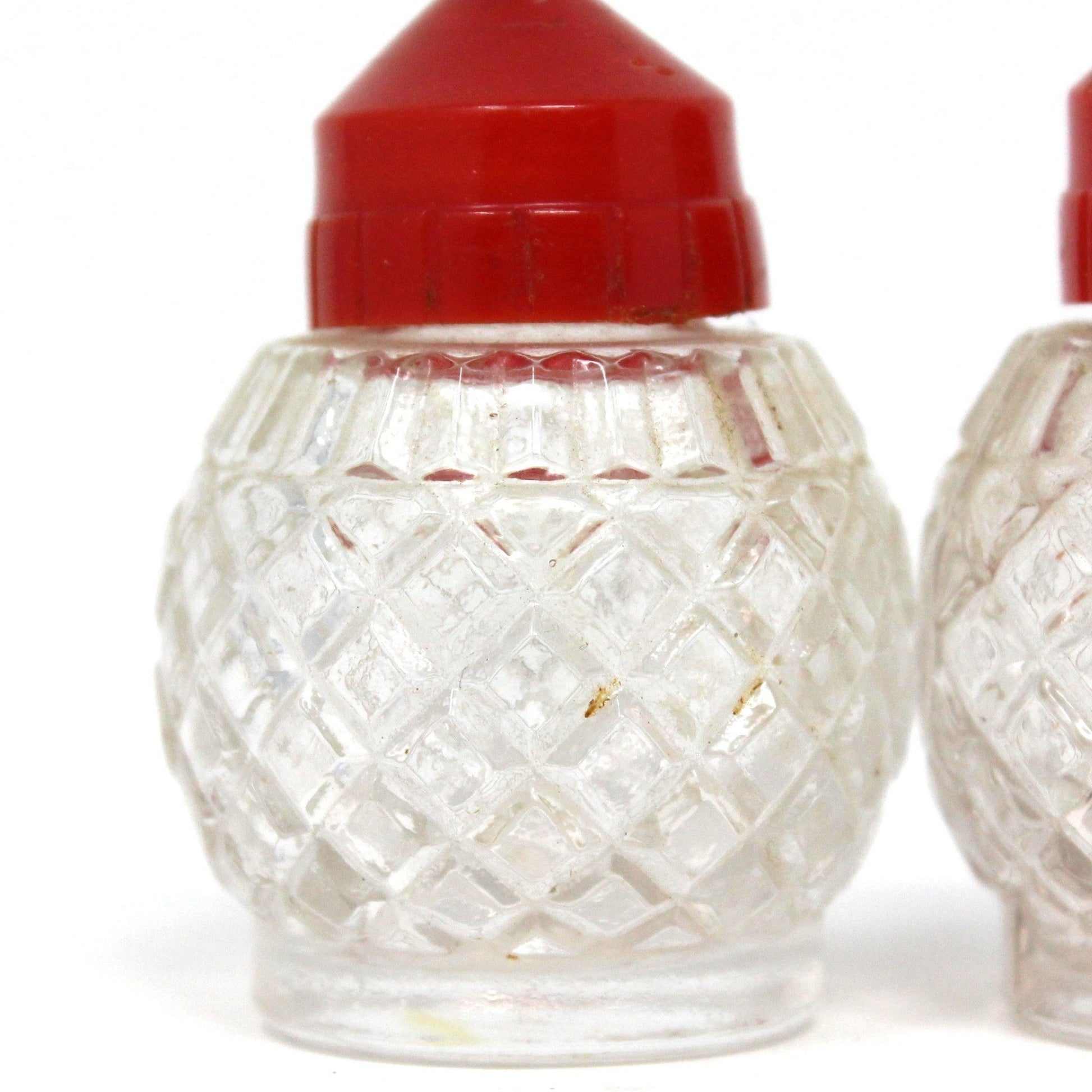 - Vintage Salt & Pepper Shakers, Bakelite Red Tops, Pressed Glass, Vintage Collectibles, Small Shakers, Individual Sized Glass Shakers, Mini Salt and Pepper, (Discontinued)