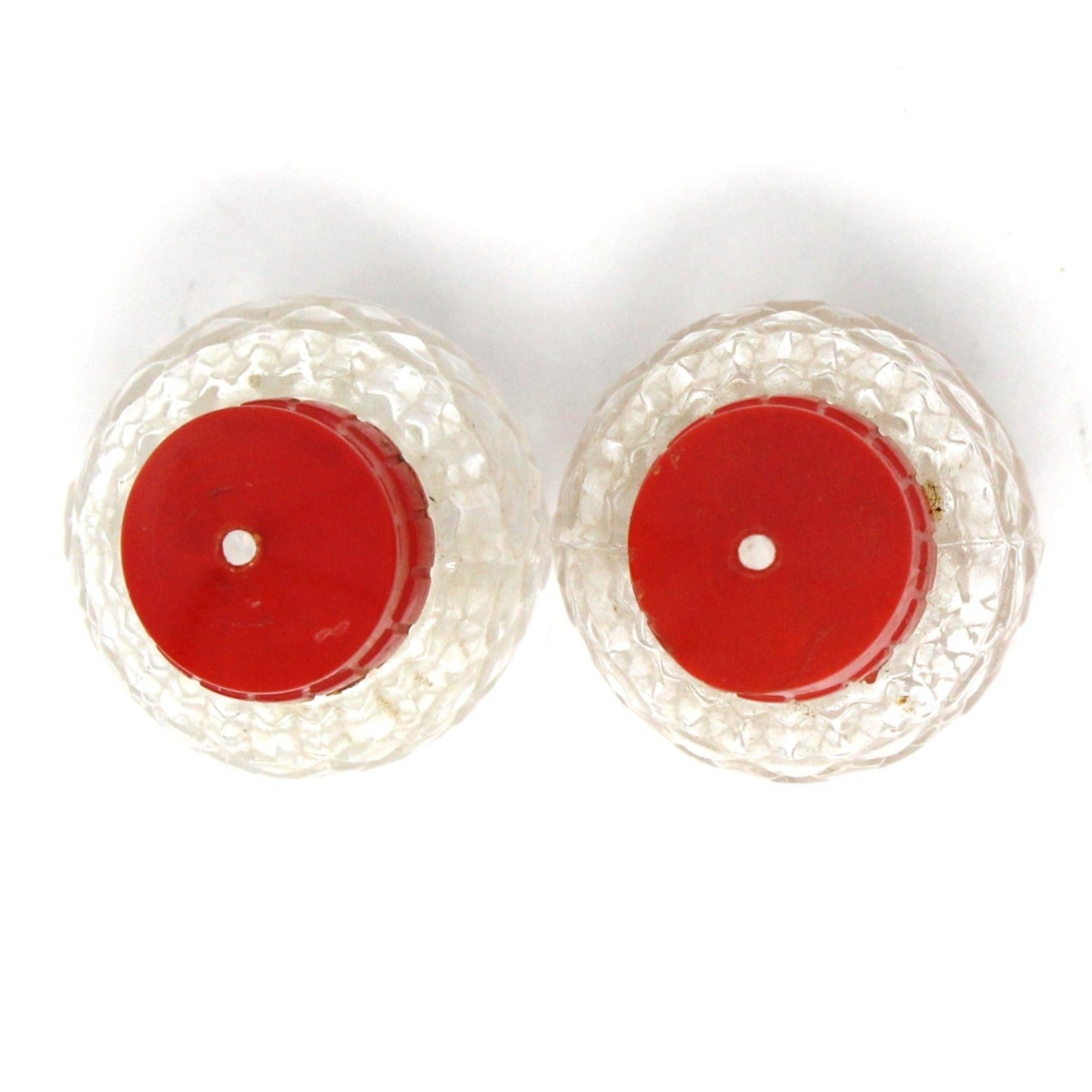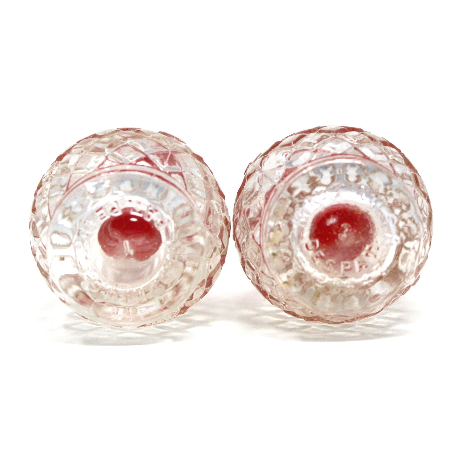 Salt and Pepper Shakers, Pressed Glass with Red Bakelite Tops, Vintage
