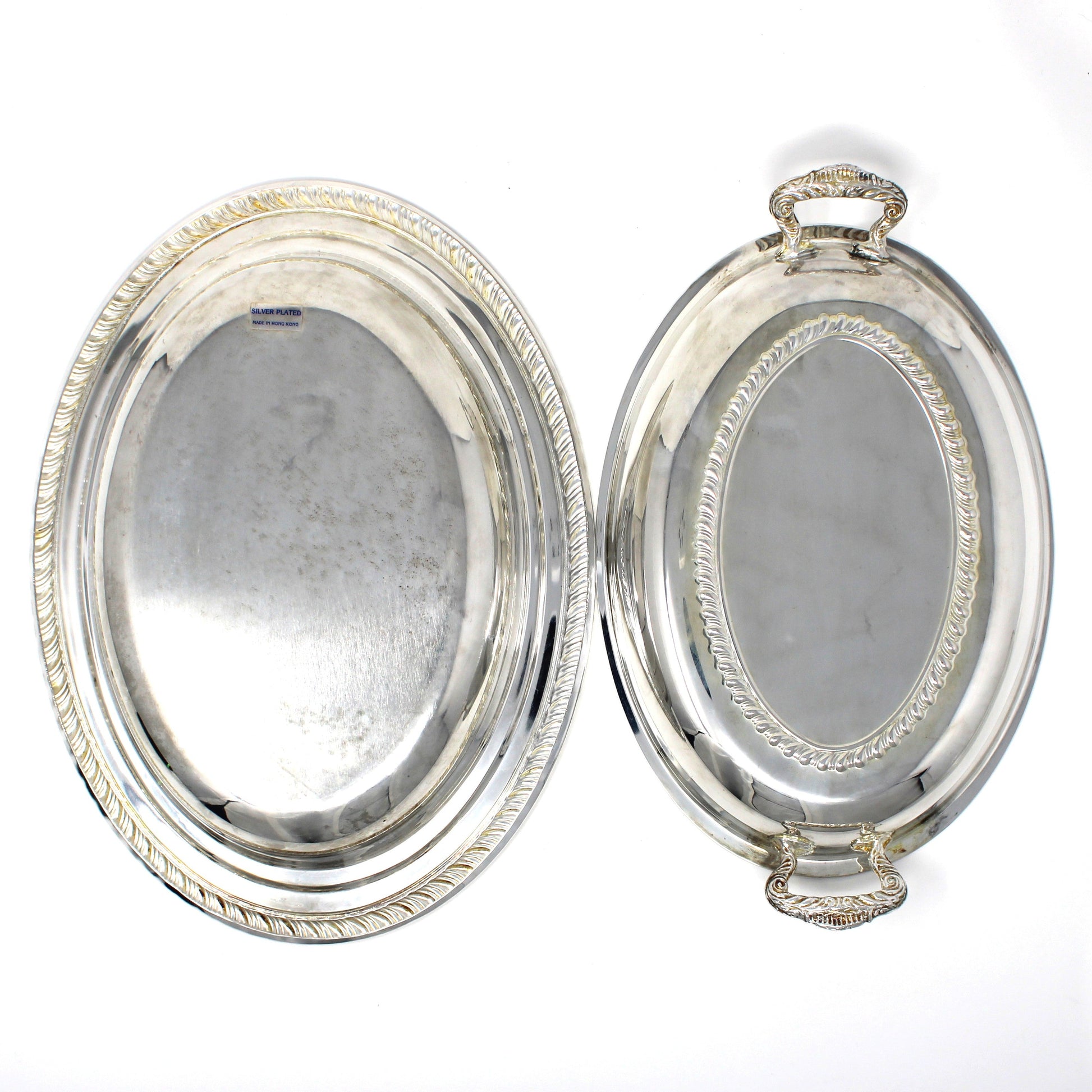 - Details: A beautiful, and complete, oval vegetable serving dish, including the glass insert. The design is very simple and elegant, suitable even for today's minimalist style. it features a Gadroon Edge and intricate handles. It is actually two serving dishes in one, if you didn't need to use the lid, it can be used as a second, shallow serving dish. It is unmarked, however this one retains the original box from ISC showing style no. 99110506. Perfect on a holiday table, or a bridal shower, wedding buffet table or for an elegant dinner at home.
