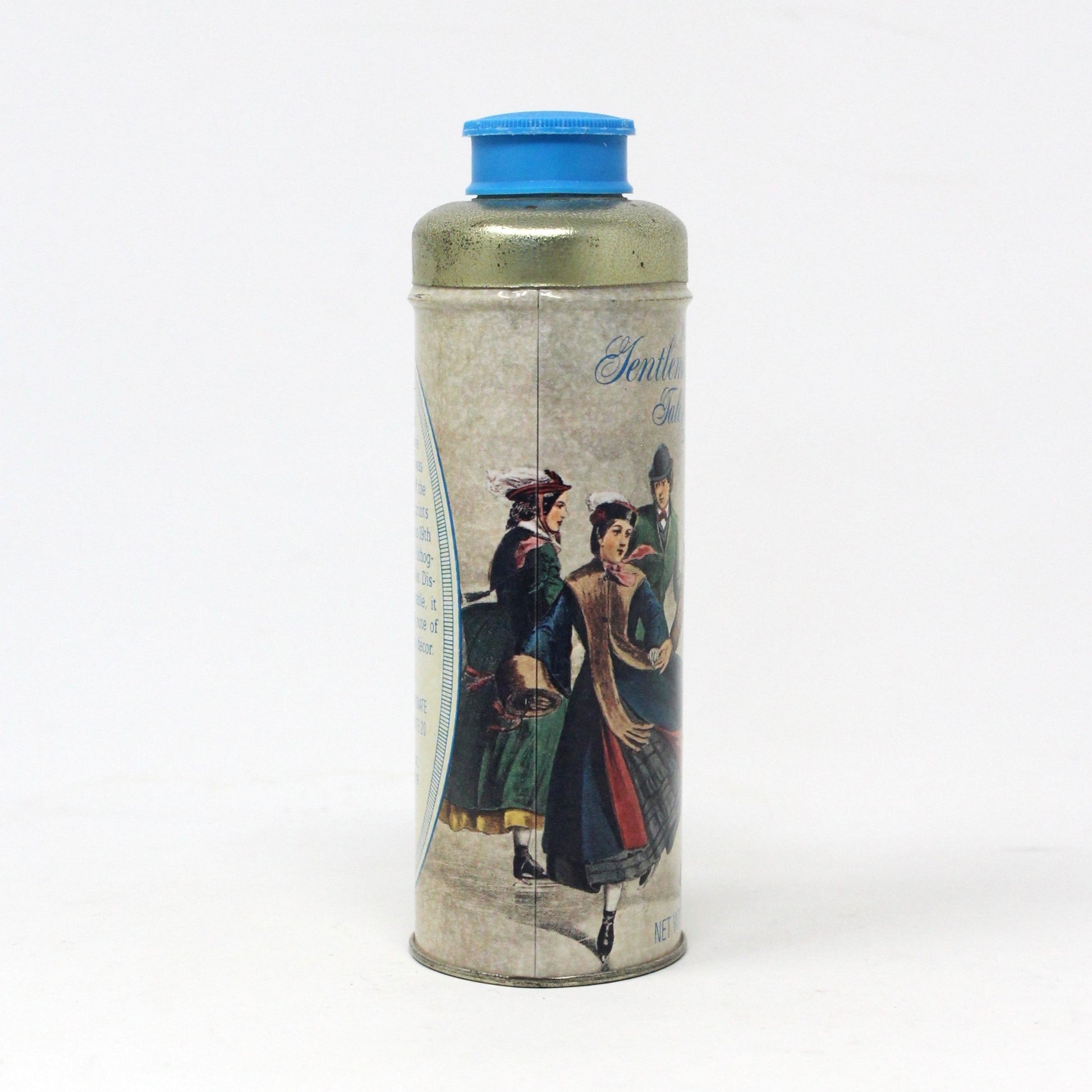 Shaker, Avon, Tin Powder Shaker, Gentleman Skater Talc For Men, Metal, Currier & Ives, Vintage Collectible, 1970's