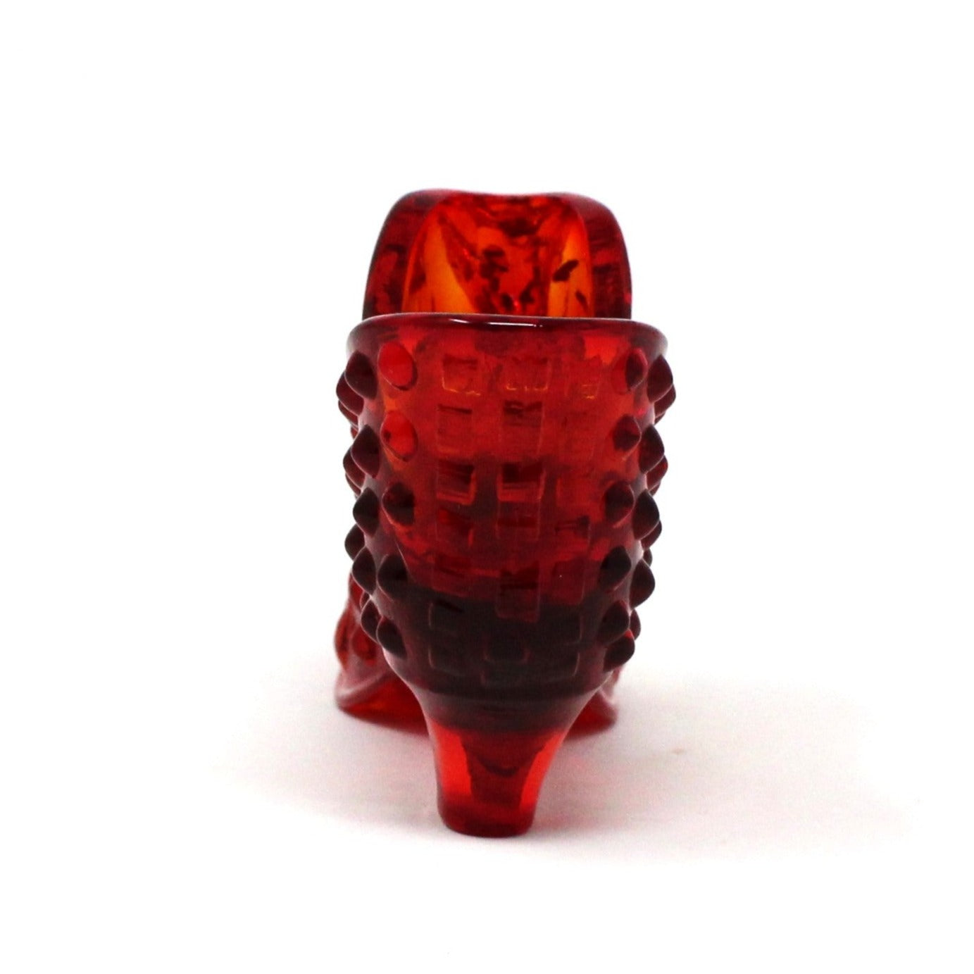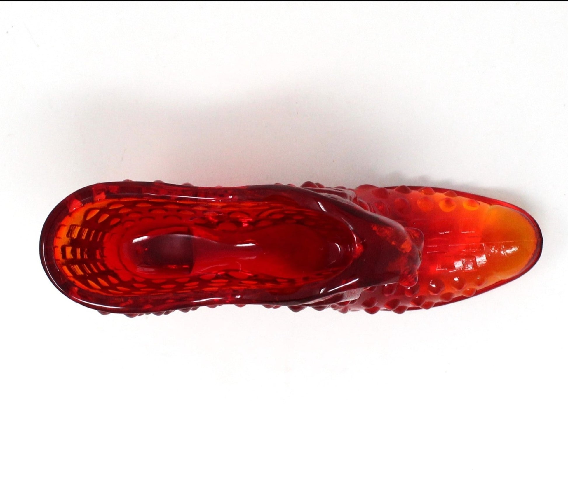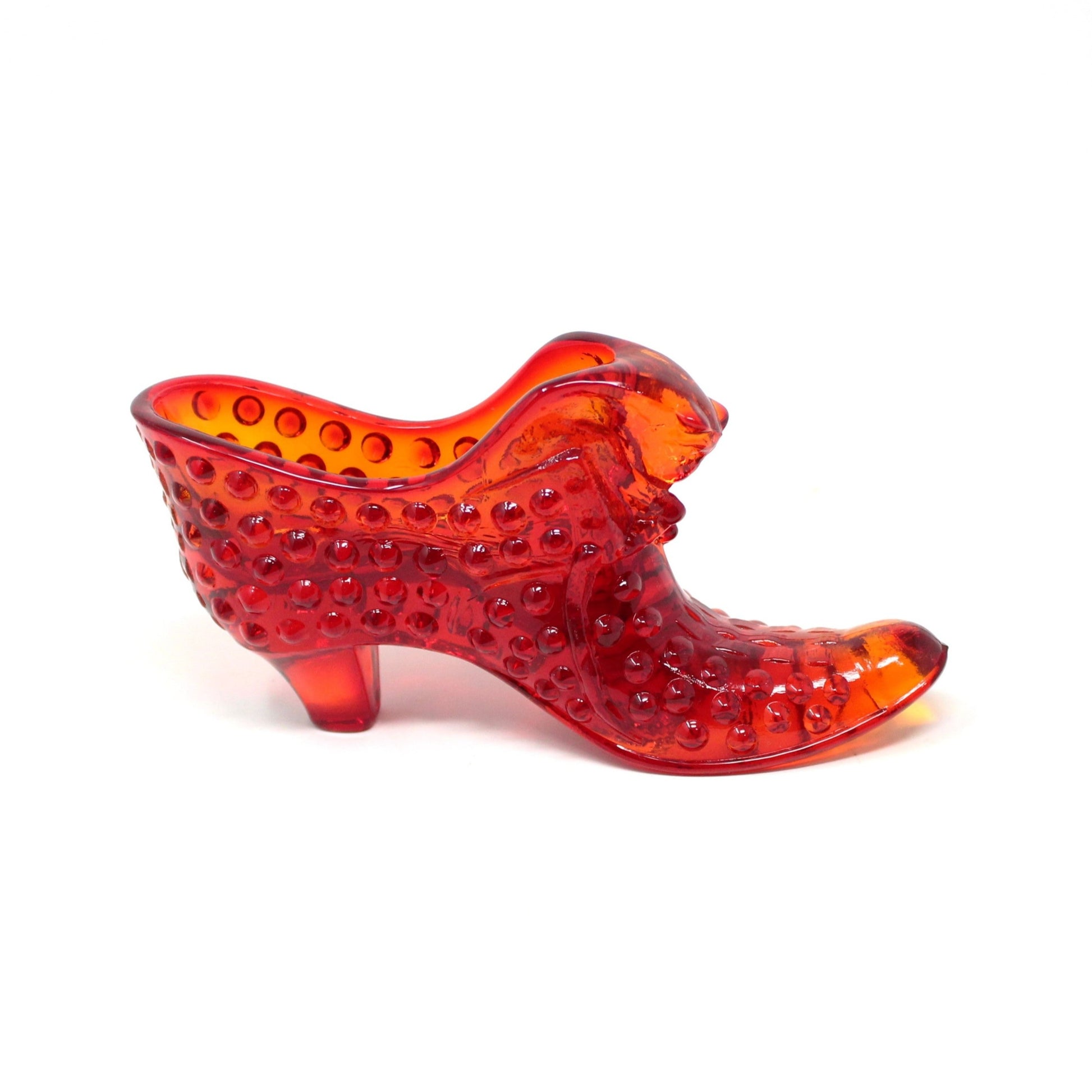 Shoe, Fenton Slipper, Hobnail Orange / Amberina Glass, Vintage, SOLD
