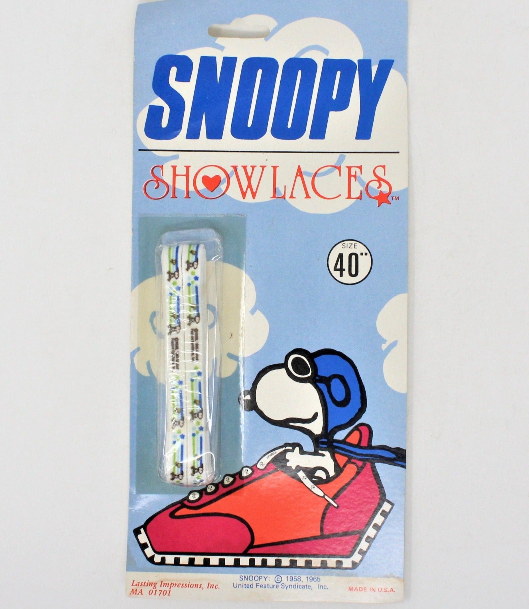 - Vintage Snoopy Shoelaces, Flying Ace Shoelaces, The Lone Beagle, New Old Stock Display Card, Vintage Licensed Characters Collectibles, Lasting Impressions, Vintage Graphics Display Card, (Discontinued)