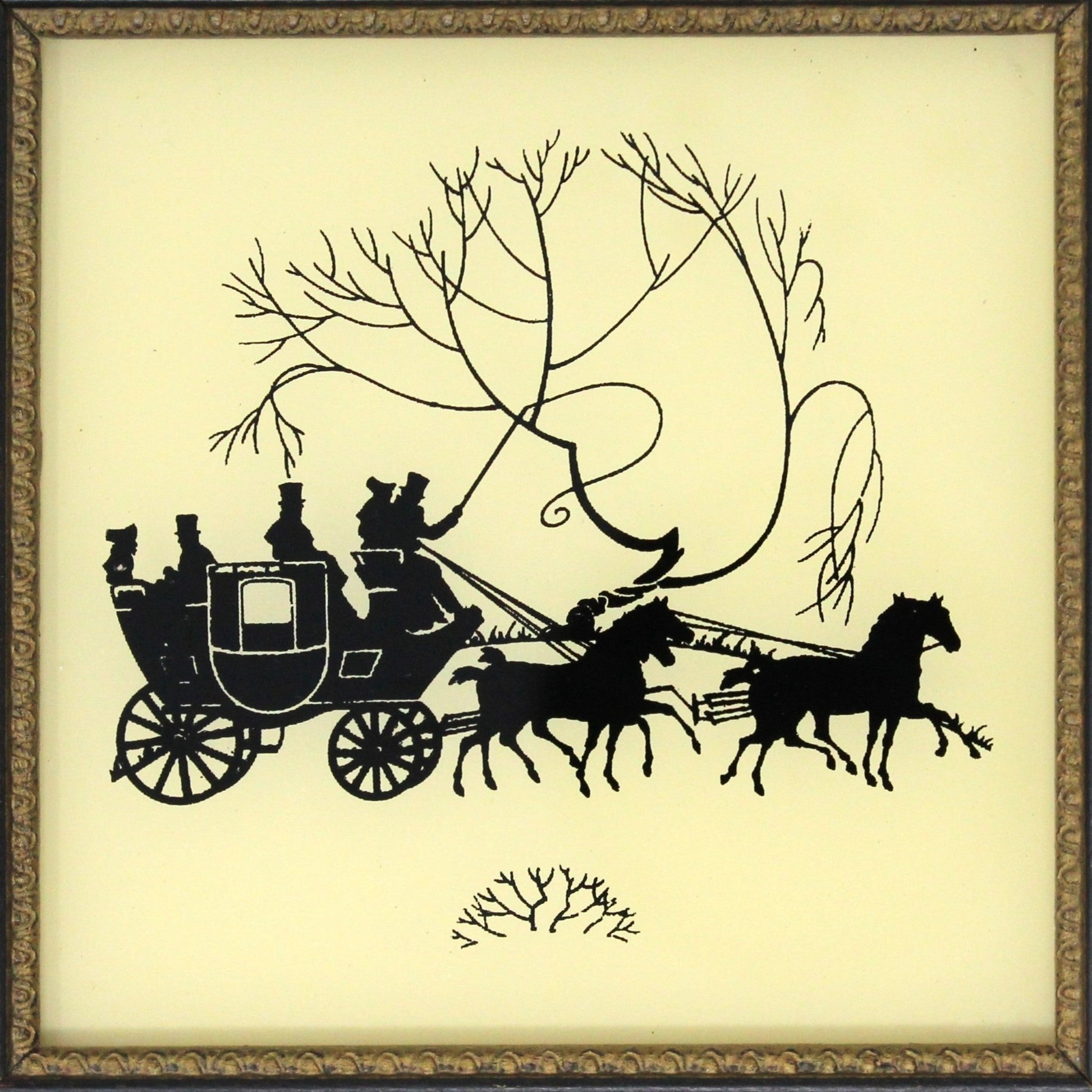 - Vintage Framed Silhouette, Reverse Painted, Victorian Horse-drawn Stagecoach, Wall Decor, Home Decor, "A Fresh Team" by Reliance Co., (Discontinued)
