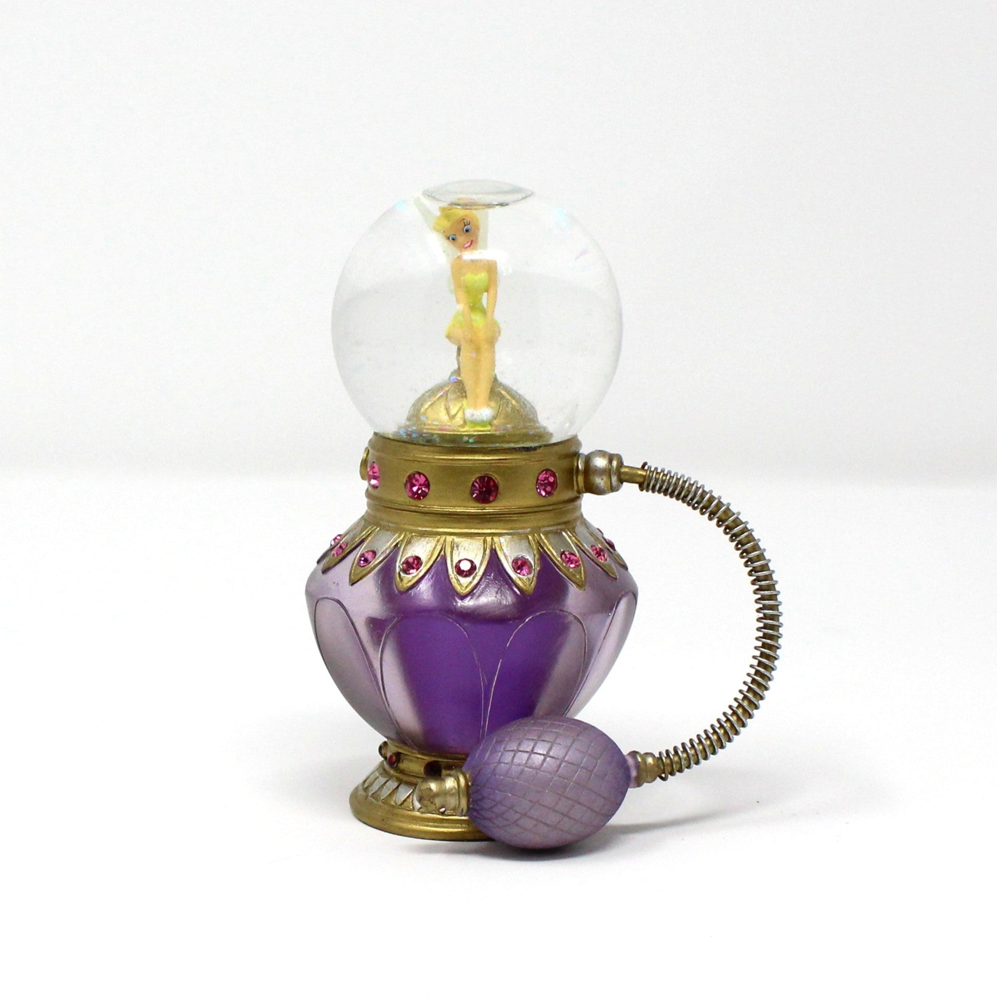 • Vintage Mini Snow Globe,  Dated 2005, Tinkerbell Atomizer Perfume Bottle, Purple and Gold, Disneyana, Disney Collectibles, Vintage for Children, (Discontinued)