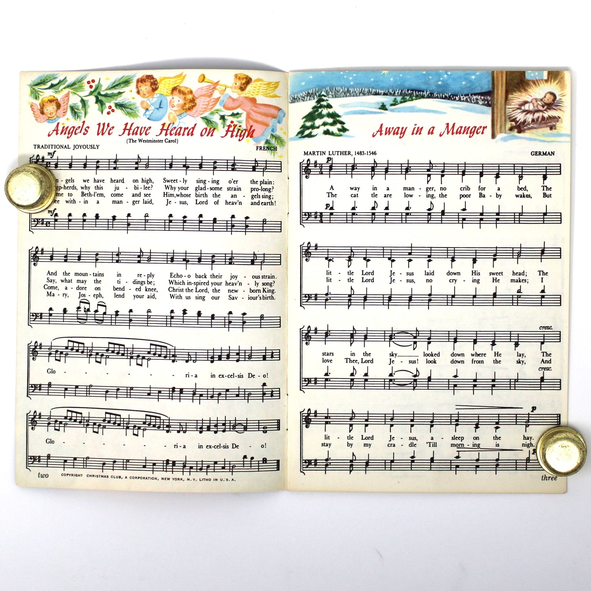 Songbook / Lead Sheet, Christmas Carols, Savings Club, Singing Angel with Poinsettias, Vintage Promotional Item