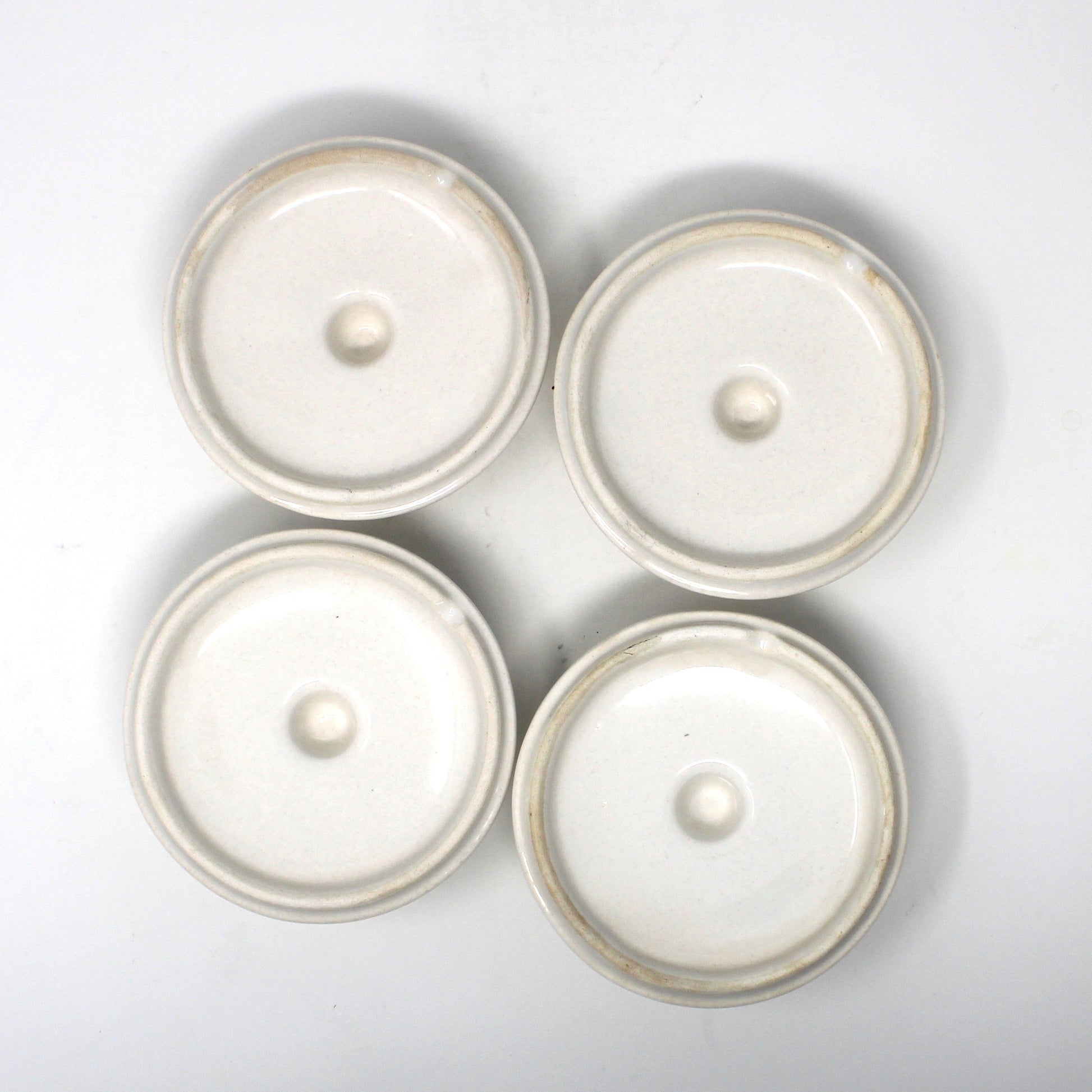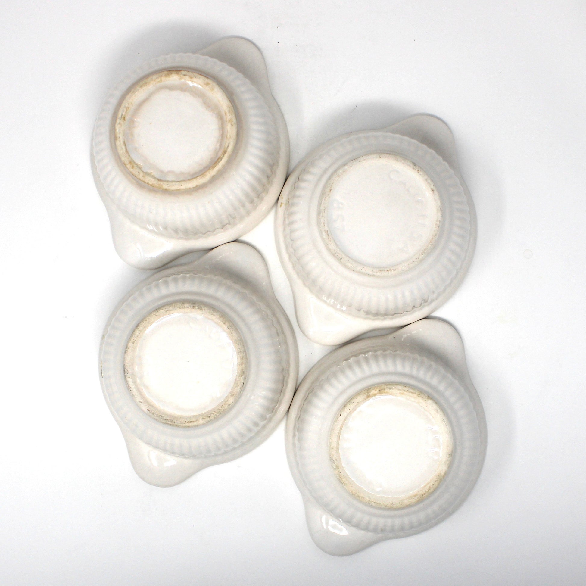 - Vintage Set of Four Soup Crocks / Bowls, California USA Pottery 857, White Ceramic Lidded with Handles, Mid Century Dinnerware, Tableware, Collectible Pottery, French Onion Soup Bowls, (Discontinued)