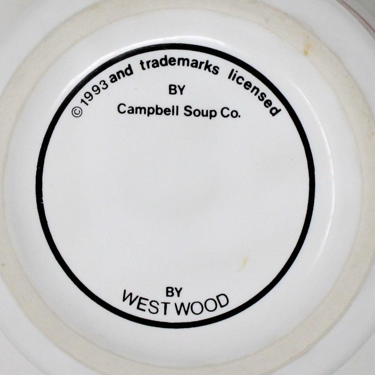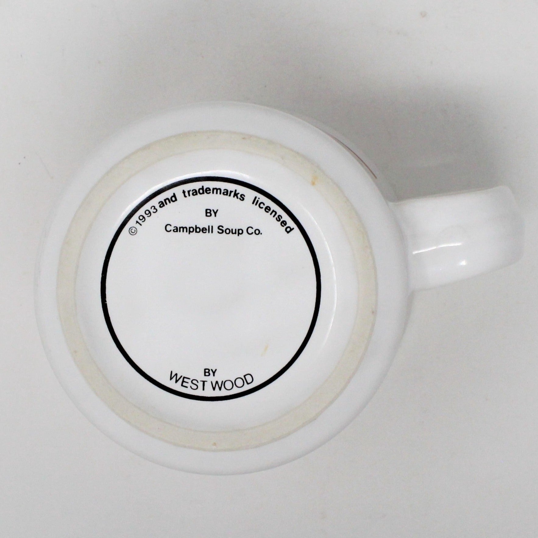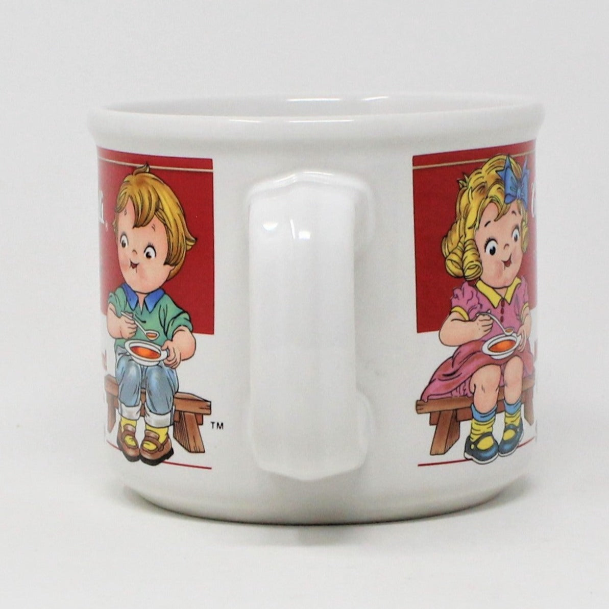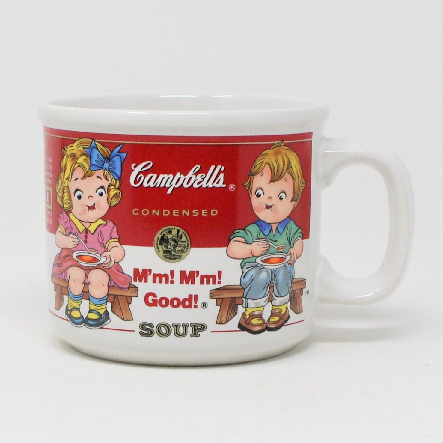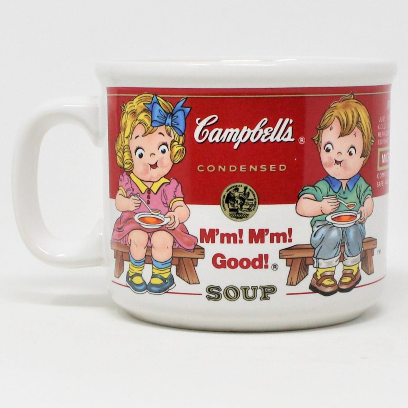 - Details: These are not only really cute soup mugs, they are a highly collectible! This mug was released by Westwood and feature two adorable Campbell Soup Kids, one boy and one girl, sitting on wooden stools, eating their soup, same design on both sides. The mug is stamped on the bottom: "1993 and trademarks licensed by Campbell Soup Co, by Westwood". It is microwavable and dishwasher safe. These mugs look great displayed all together in a vintage or country kitchen. We carry several Campbell's Soup Mugs, (while supplies last), we offer a 20% discount with the purchase of 3 or more, mix and match. Please Contact Us for discount code and let us know which mugs you would like prior to purchasing.