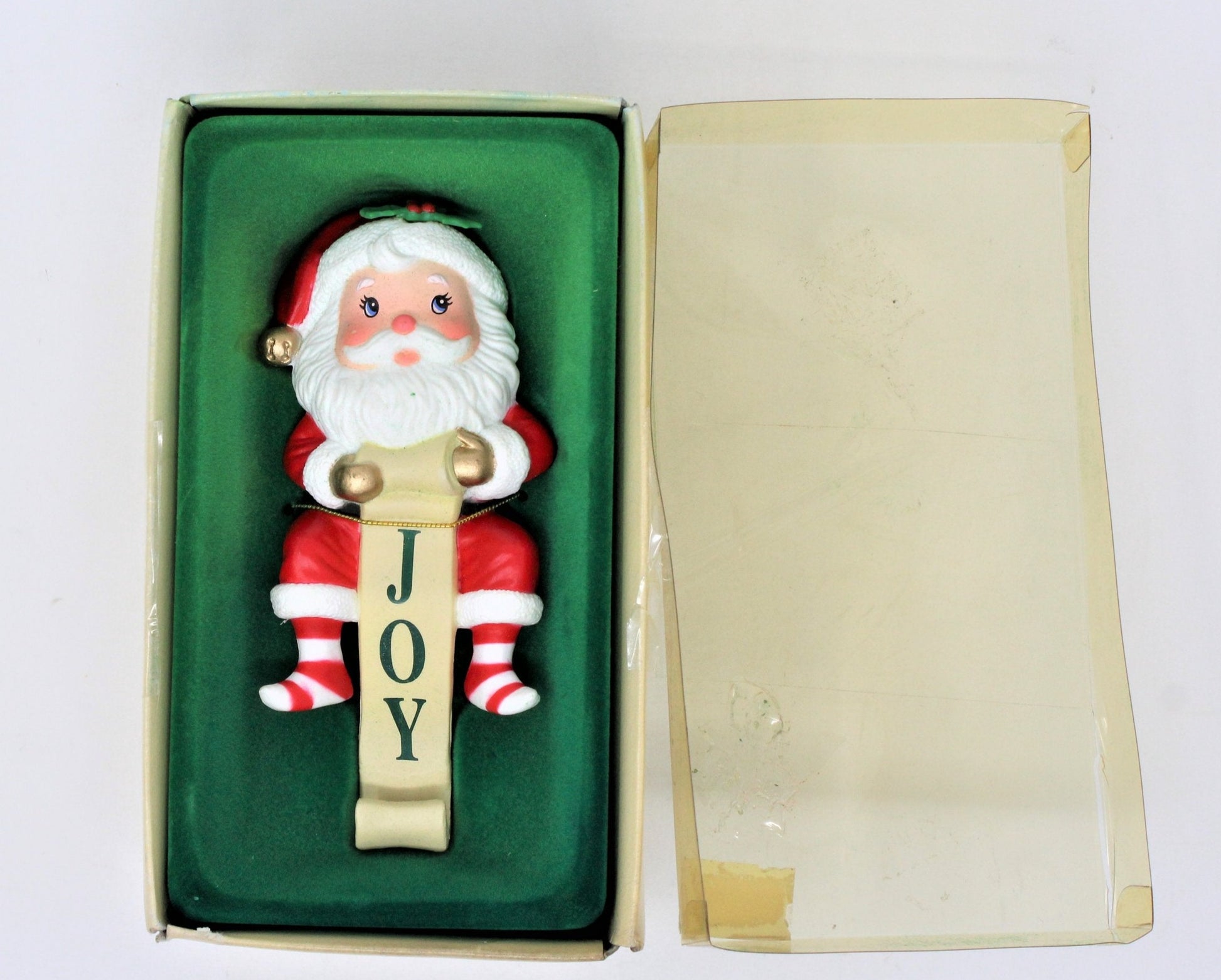 - Vintage Stocking Hanger, Santa Claus Joy, Christmas Holiday Decor, Russ Berrie Stocking Hanger, Retro in Original Box, Vintage Collectibles, (Discontinued)