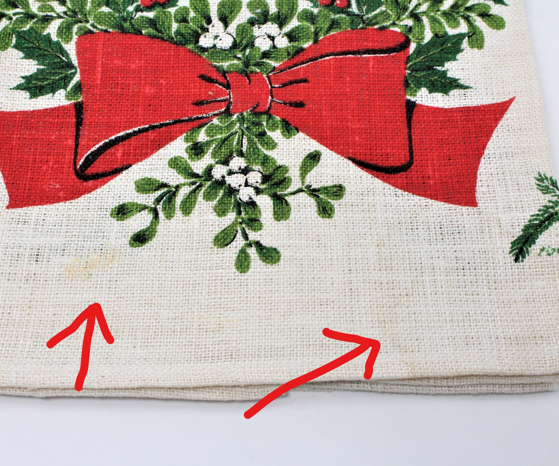 - Condition: Vintage - NOS, Very Good Vintage Condition. There are two very small stains on the top, and two on the bottom, both photographed for you, priced accordingly. This towel has never been used, we did not launder it, stains will most likely wash out if treated, but we make no guarantees. Please review all pictures and make sure you love this item before purchasing, we can't accept returns. All sales final. Please remember these are ANTIQUE and VINTAGE items, they are NOT new, although Unused, there may be signs of long term storage. Every effort has been made to show any scratches, wear and tear and imperfections.