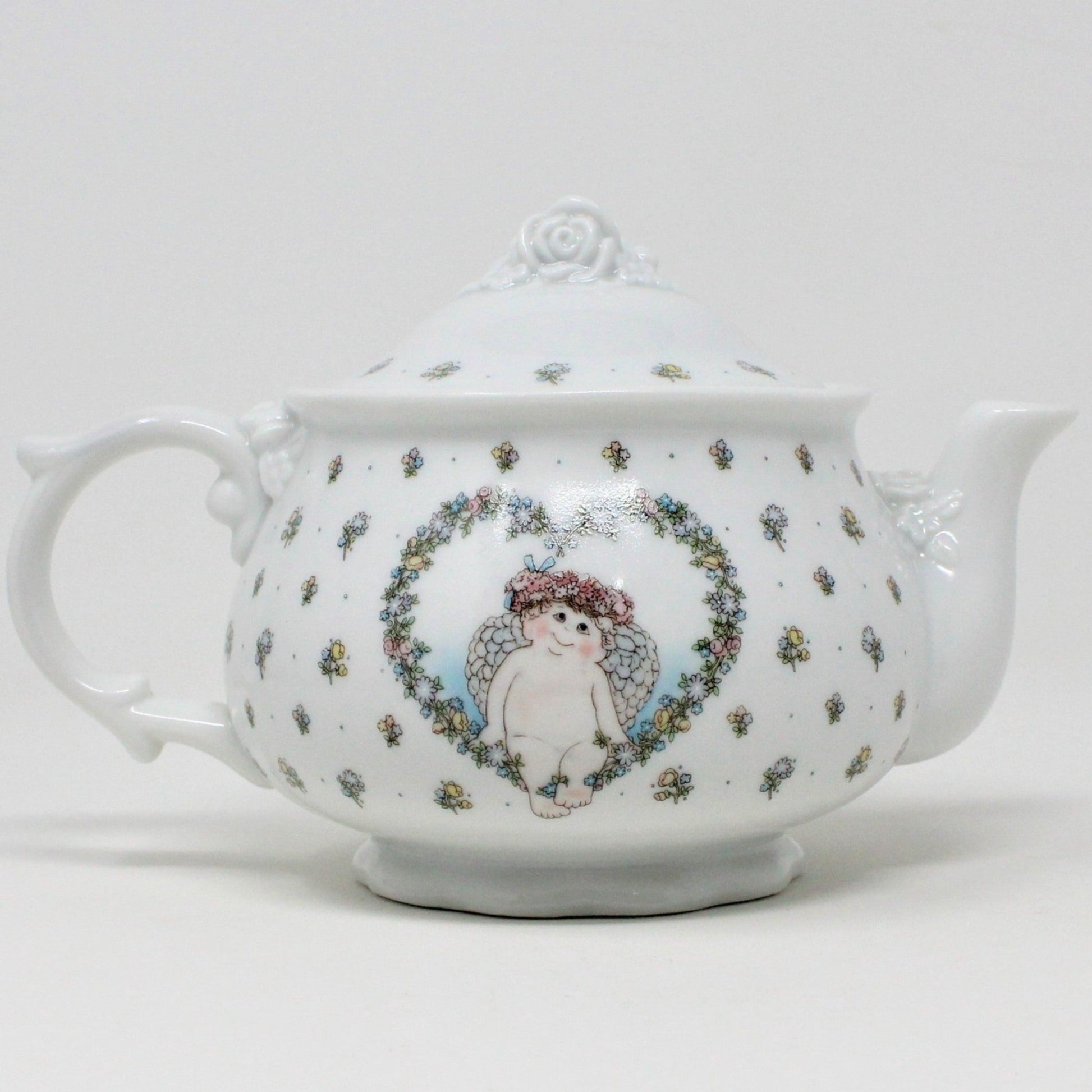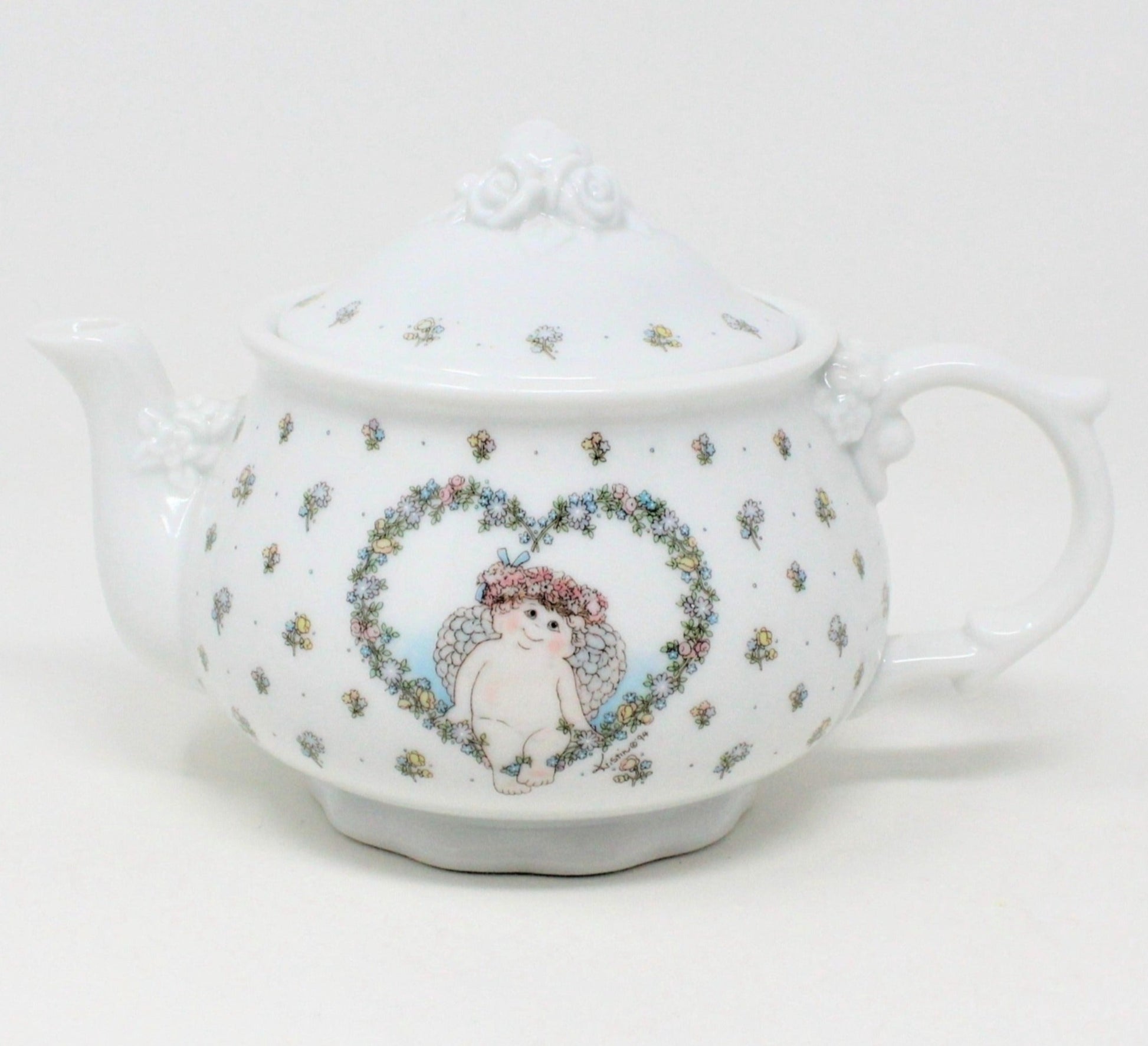 - Vintage Teapot, Dreamsicles Angel Cherub in Floral Heart, Tea Lovers, Romantic, Teapot Collectors, Tea Wares, Licensed, (Discontinued)