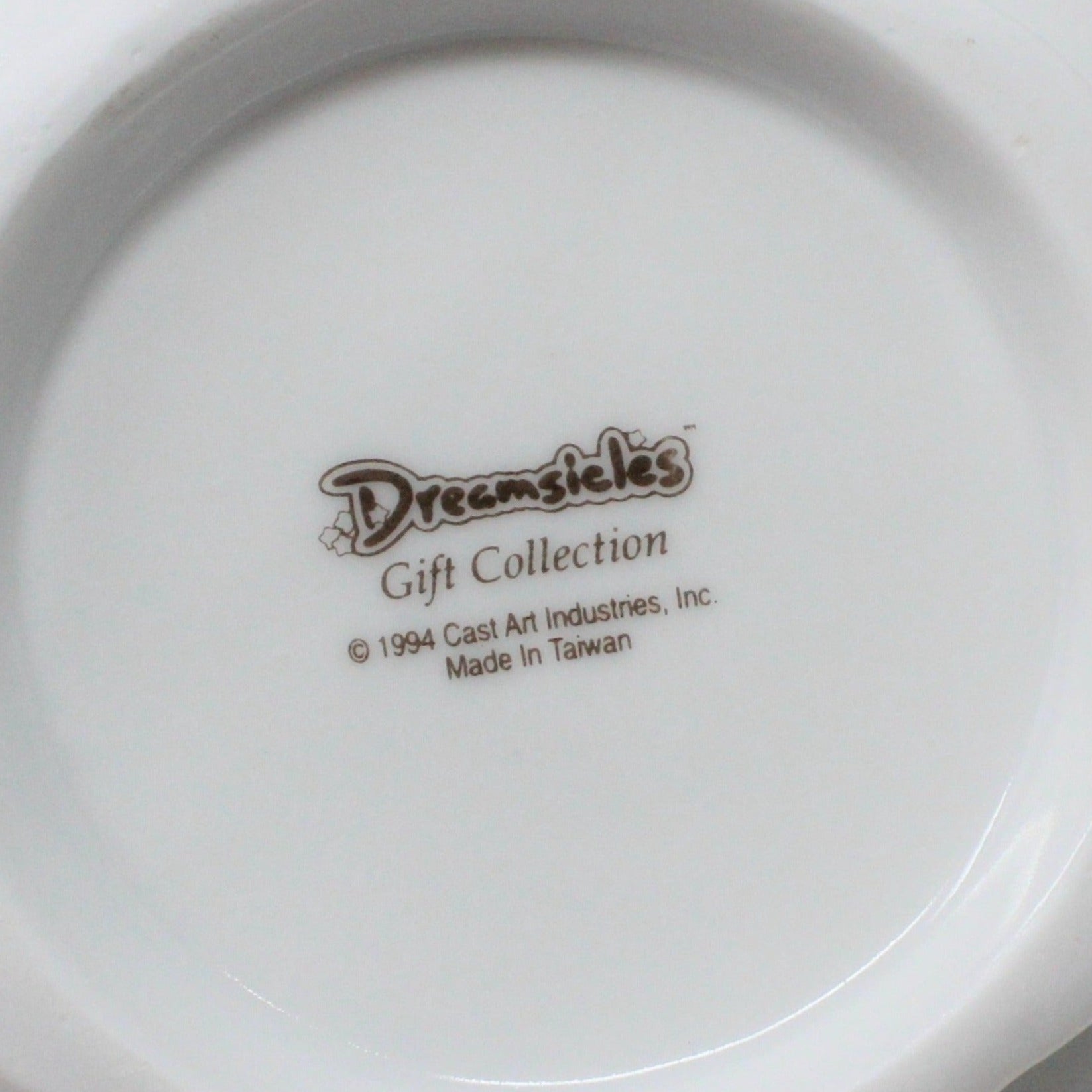 Dreamsicles were created by artist Kristin Haynes in the 1980's. Originally she made the cute cherub figurines by hand, individually and sold them locally. By 1991 the figurines had become so popular, she couldn't keep up production and in 1991, she partnered with a local giftware company, Cast Art Industries. By the late 1990's there were Dreamsicles waterglobes, musicals, bells, ornaments, plates, teapots, cross-stitch, mugs and more. Some made by Cast Art and others were licensed to other companies like: The Hamilton Collection, Berkeley Designs, Leisure Art and Giftco, Inc. By the early 2000's sales started to decline, they sold the Dreamsicles brand to Willitts Designs International, (part of the Lenox Group). In 2003 production of Dreamsicles stopped.