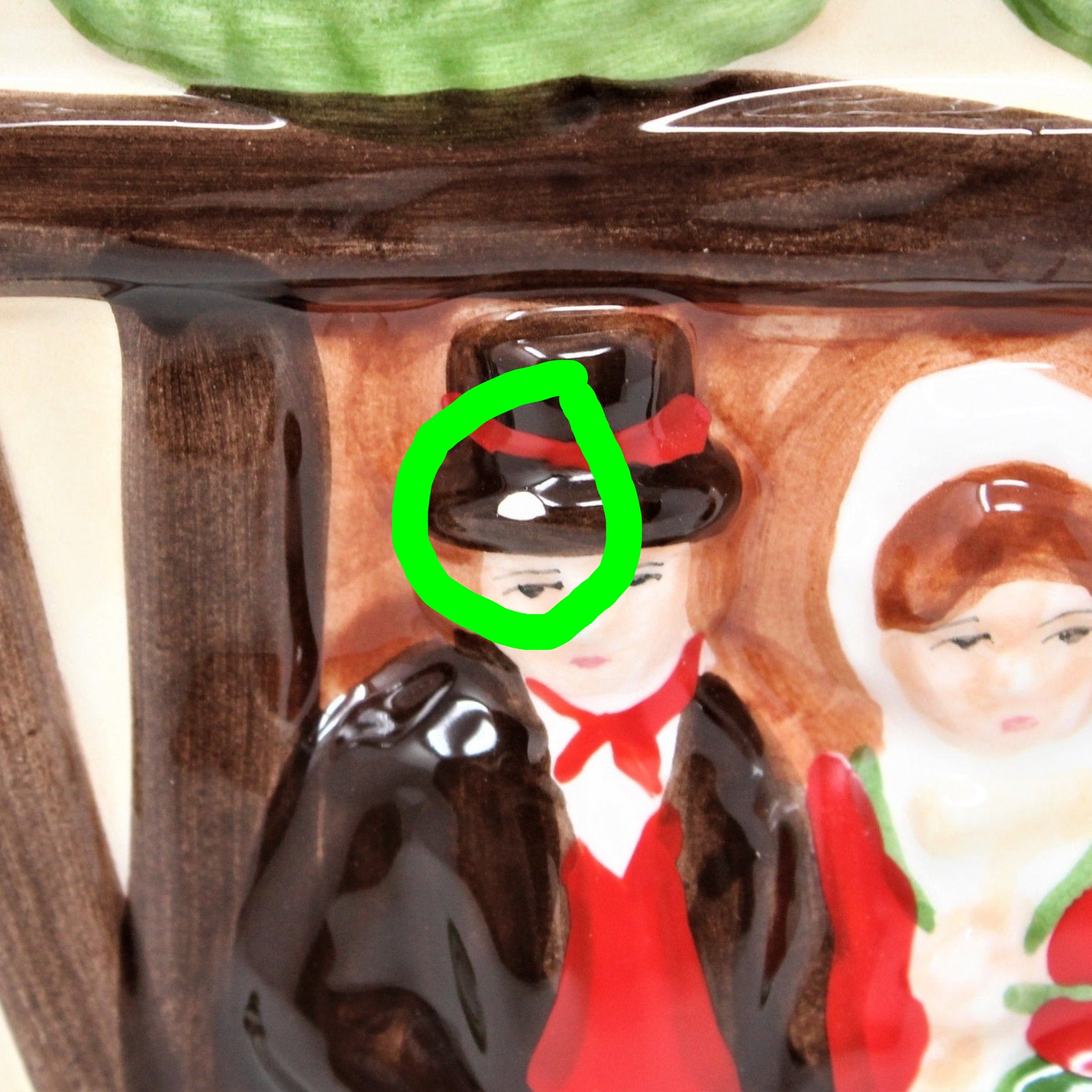 - Condition: Vintage - Used. Very Good Condition. There is one tiny chip on the gentleman's hat, could be easily covered with a black sharpie or paint. Otherwise, there are no scratches or any other damage on this piece. Please review all pictures and make sure you love this item before purchasing, we can't accept returns. Please remember these are VINTAGE and ANTIQUE items, they are NOT new, every effort has been made to show any scratches, wear and imperfections.