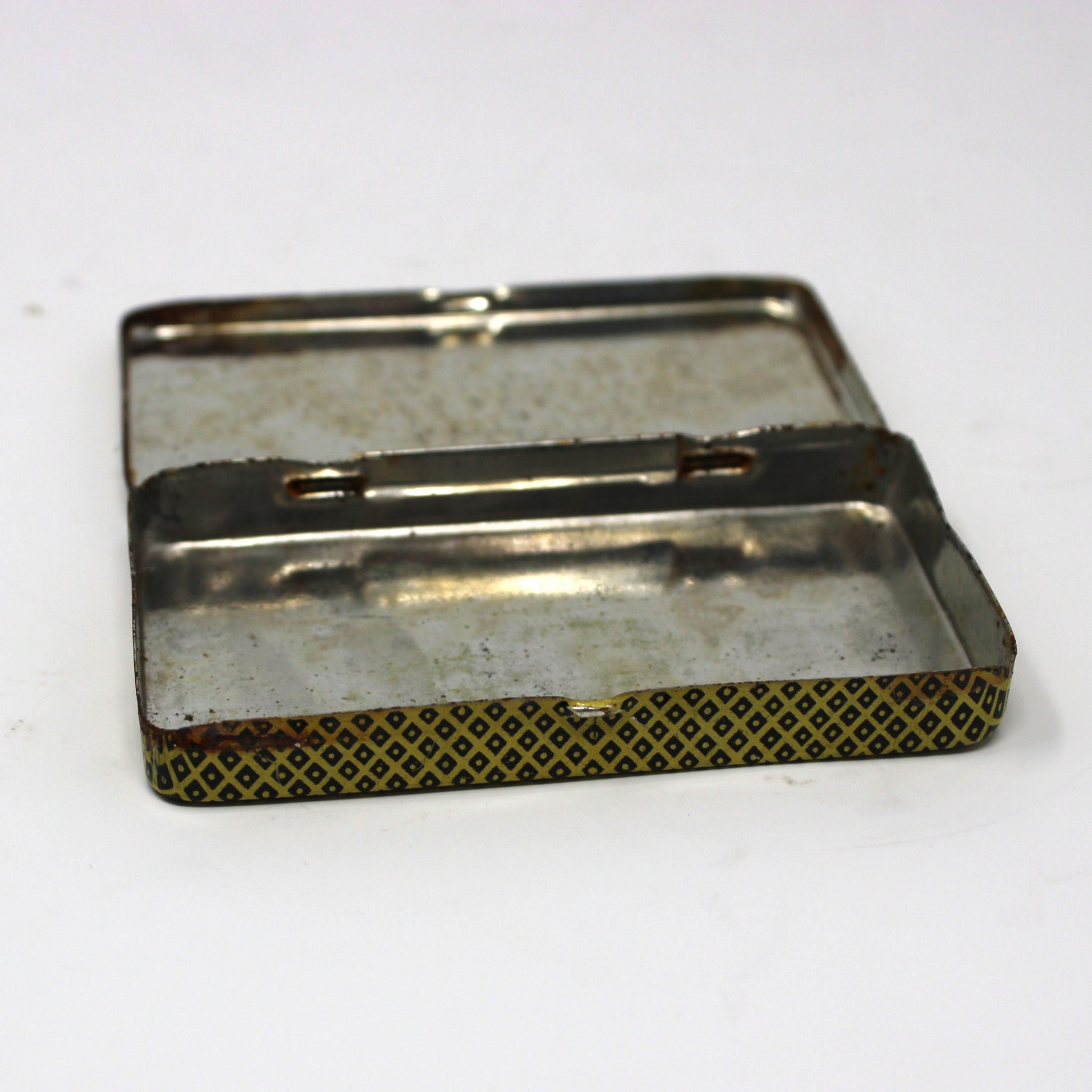- Condition: Vintage - Used. Very Good Condition. Please note size. Although this tin was never used as intended, (never filled), there are signs of long term storage. We have several in stock, all have similar issues like: minor scratching, worn spots, or stains. None are dented. All issues are acceptable due to age/use/wear. Please review all pictures and make sure you love this item before purchasing, we can't accept returns. Please remember these are ANTIQUE and VINTAGE items, they are NOT new, every effort has been made to show scratches, wear and tear and imperfections.