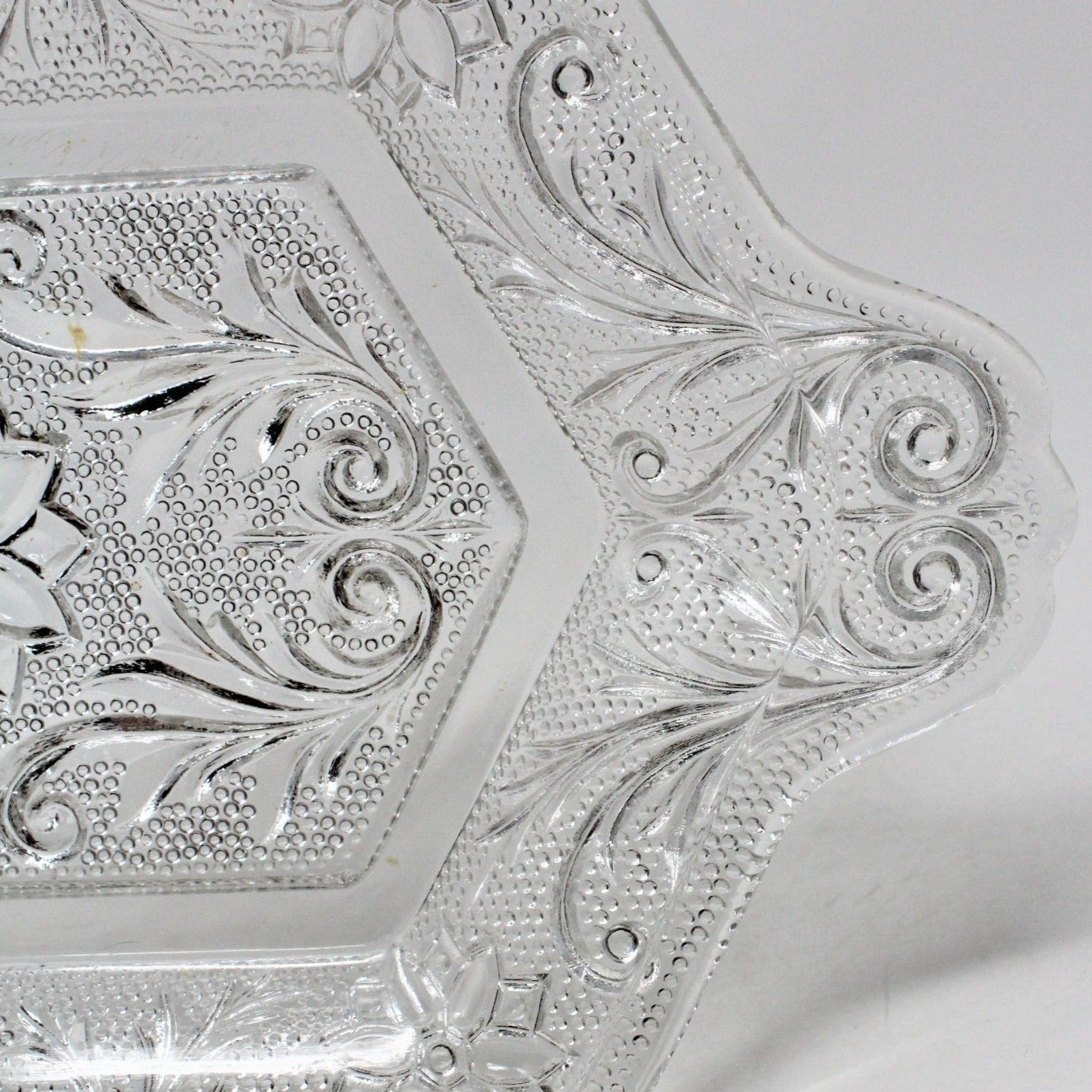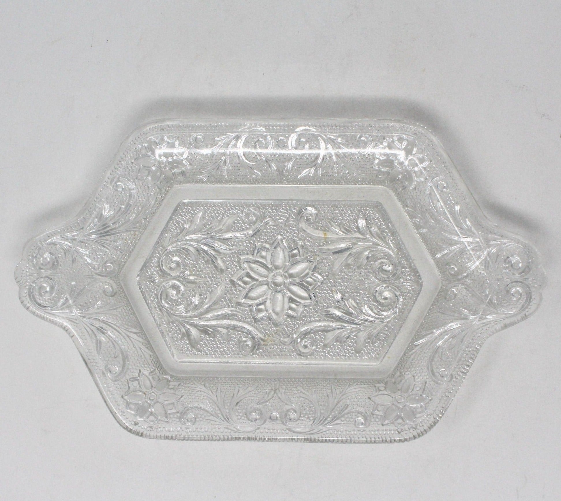 - Vintage Tray, Glass Serving Tray, Sandwich Clear Pattern, Indiana Glass / Tiara Exclusives, Molded Glass, Pressed Glass, Built In Handles, Mail Tray, Condiment Tray, Vintage Glass, Vintage Collectibles, (Discontinued)