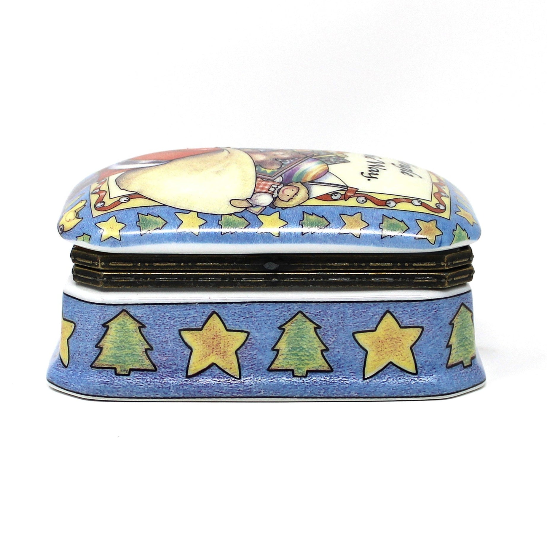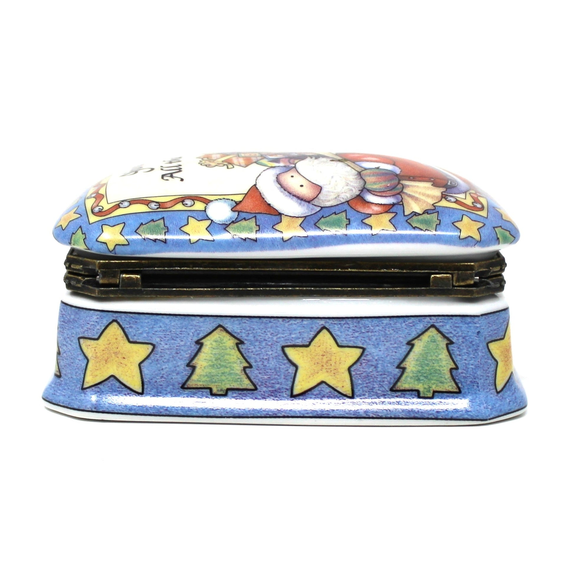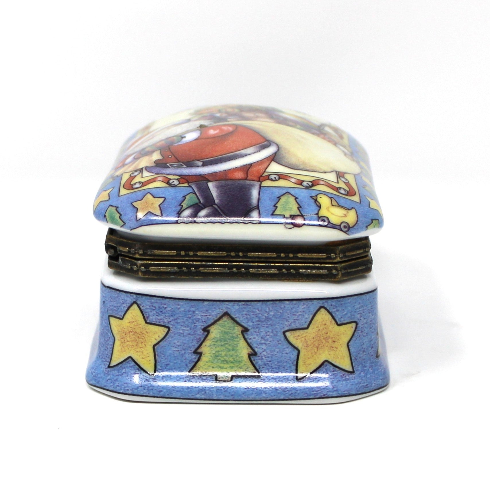Trinket Box, Hinged, Suzanne Cruise, Christmas Santa, Jingle All The Way, Porcelain, Vintage