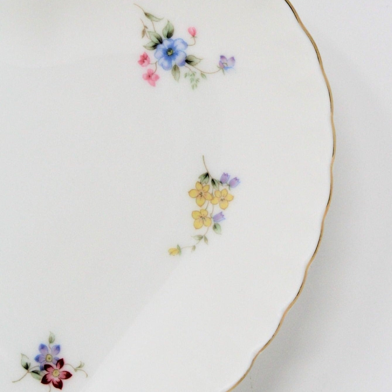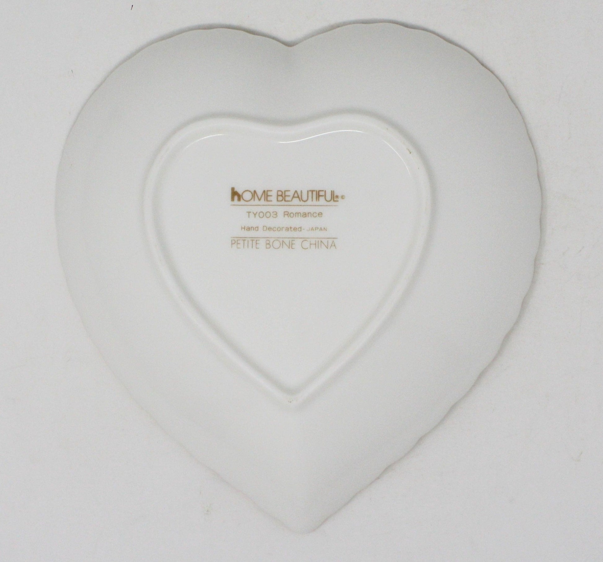 - Details: This is a very pretty heart shaped bone china dish sold by Home Beautiful, a brand from the Mikasa family. It has a gorgeous scalloped border rimmed in gold with pretty, delicate, flowers in pink, blue, yellow and purple. These little dishes are ideal for candy, chocolates, dried fruits or even in the bath to hold bath soaps, guest size toiletries or for jewelry on the vanity or dresser, the uses are endless! To be honest, it looks pretty terrific on its own as decor too.