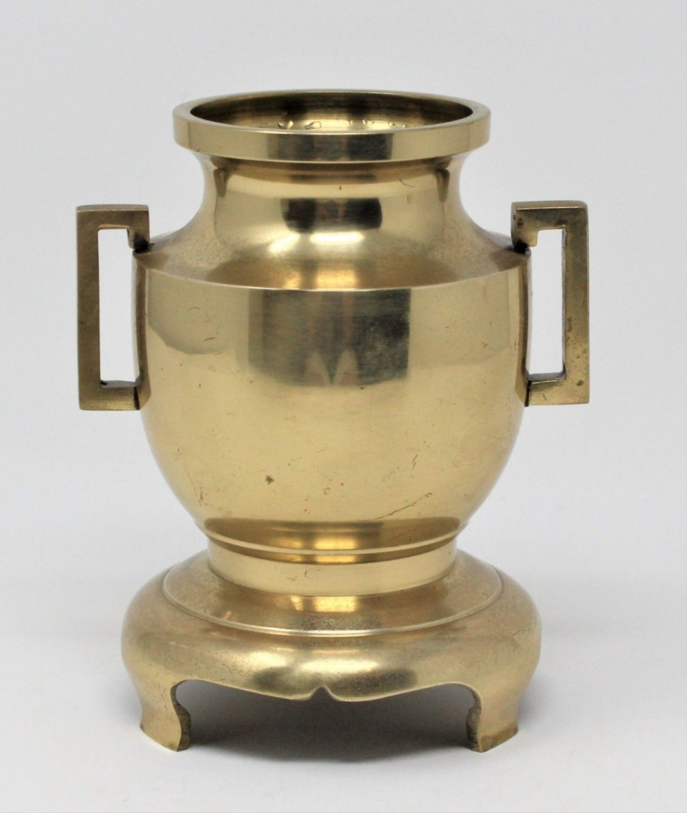 - Vintage Vase, Brass Urn Shaped, Footed with Handles, Forged Brass, Oriental Style Decor, Home Decor, Japan Imports, (Discontinued)