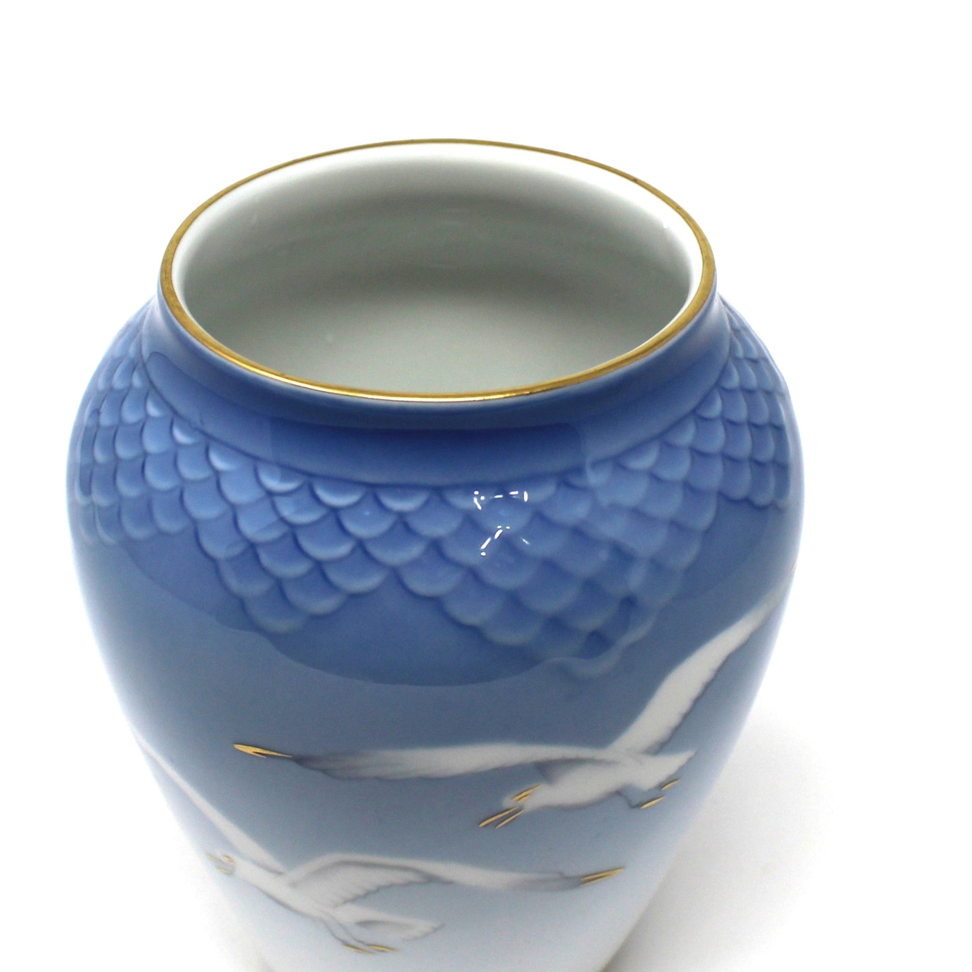 - Vintage Vase, B&G, Bing & Grondahl Kjobenhavn, Gilded Seagulls Vase, Blue & White, Porcelain with Embossed Scales, Coastal Marine Time Decor, Gift Ideas, Elegant Mid Century Decor, (Retired)