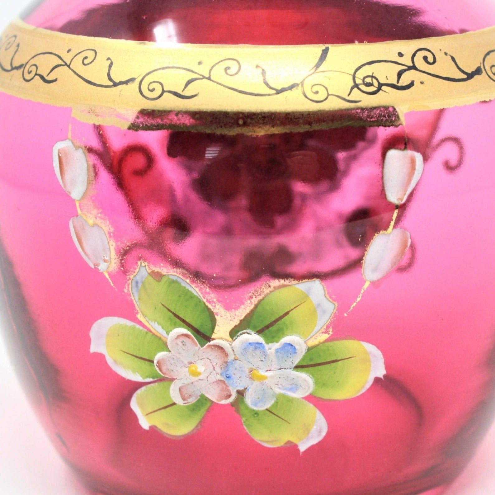 - Vintage Vase, Bohemia Cranberry Blown Glass, Gold Encrusted Hand Painted Florals and Gilded, Bohemia Pink Glass, Vintage Home Decor, Romantic Gifts, Victorian Style, (Discontinued)