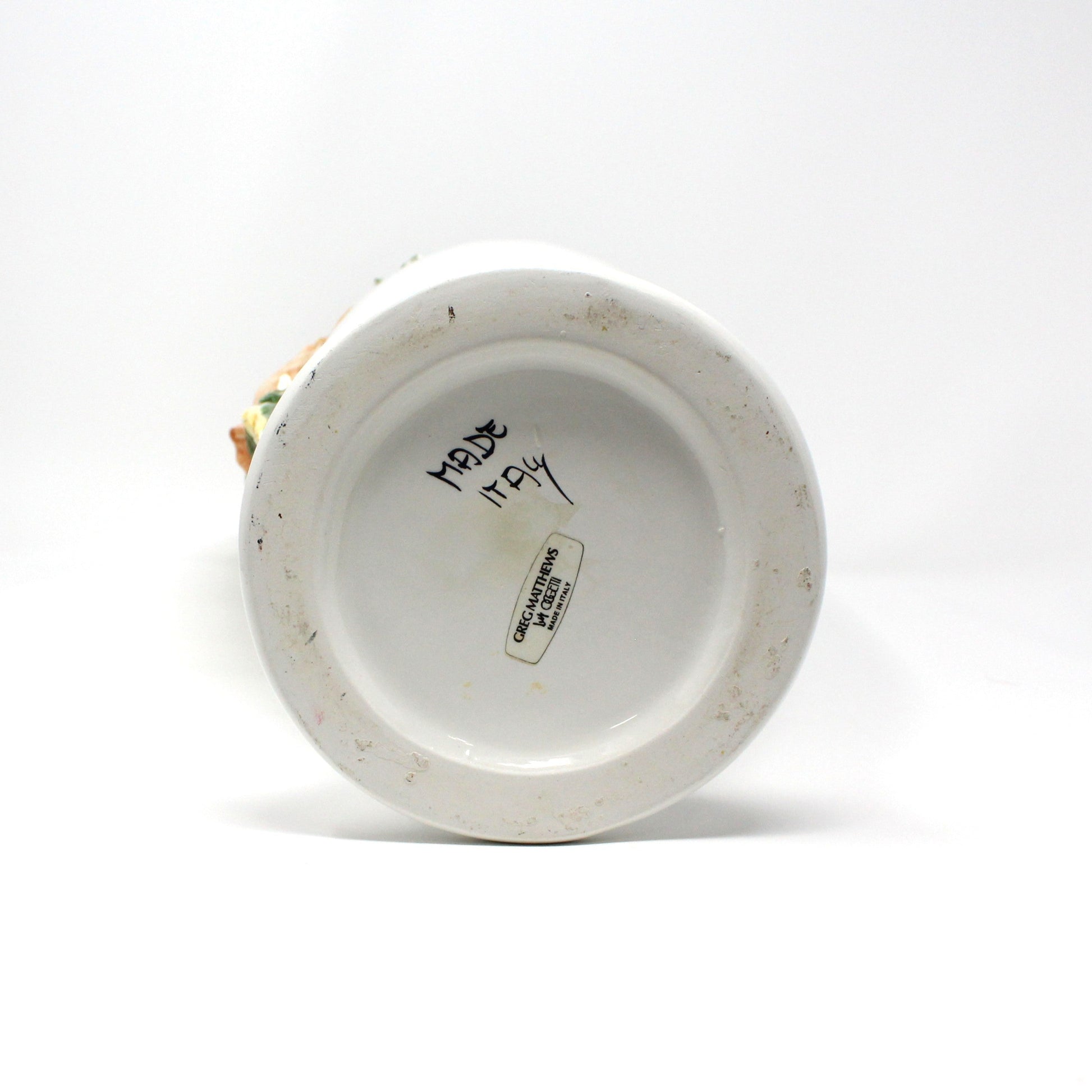 - Condition: Vintage - Used. Very Good Vintage Condition. There is a section on the bird's head missing paint, you can see the ceramic below, most likely a scrape. It could be painted over with a black Sharpie. Also, there's a small chip on the vase rim, both photographed for your review. Otherwise, there are no scratches or any other issues. Any white marks are simply lighting reflections. If this Oggetti vase was in perfect condition, it would be in the $700-$900+ price range. Please review all pictures and make sure you love this item before purchasing, we can't accept returns. Please remember these are ANTIQUE and VINTAGE items, they are NOT new, every effort has been made to show any scratches, wear and tear and imperfections.