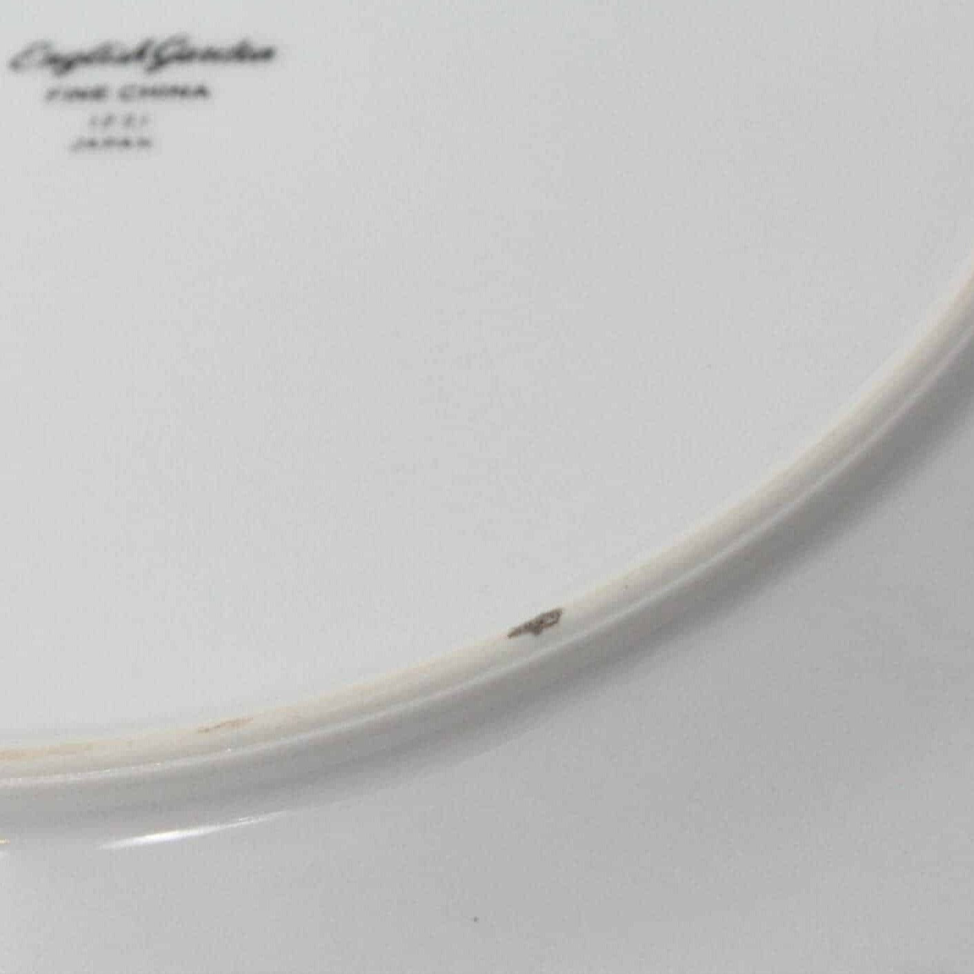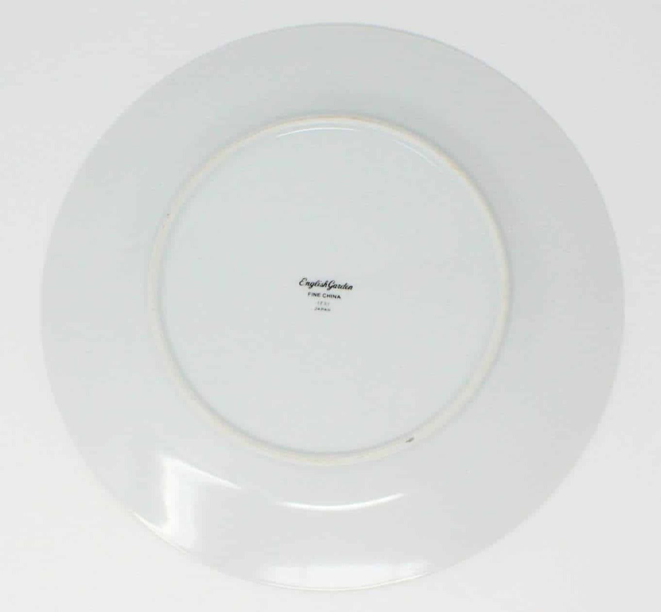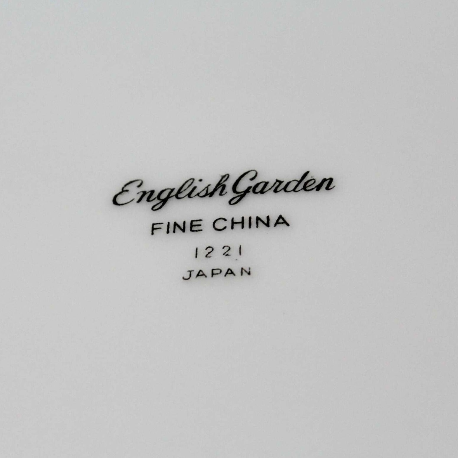 - Details: This is beautiful pattern by Fine China of Japan, it's called English Garden and it has beautiful blue flowers with smaller pink flowers and gray leaves. There's a platinum rim and other accents also in platinum. We are selling as a set of 5 dinner plates, they are beautiful in their simplicity with soft colors and gentle swirls of flowers all around. Will be an enhancement to many table settings or for those who love to mix and match patterns, would look great with blue, gray or pink china and/or stemware. We carry a few other pieces in this pattern, please search the site for 'English Garden' to view all. If you are collecting the English Garden pattern, we hope this is a welcome addition, or that one missing piece that will complete your set.
