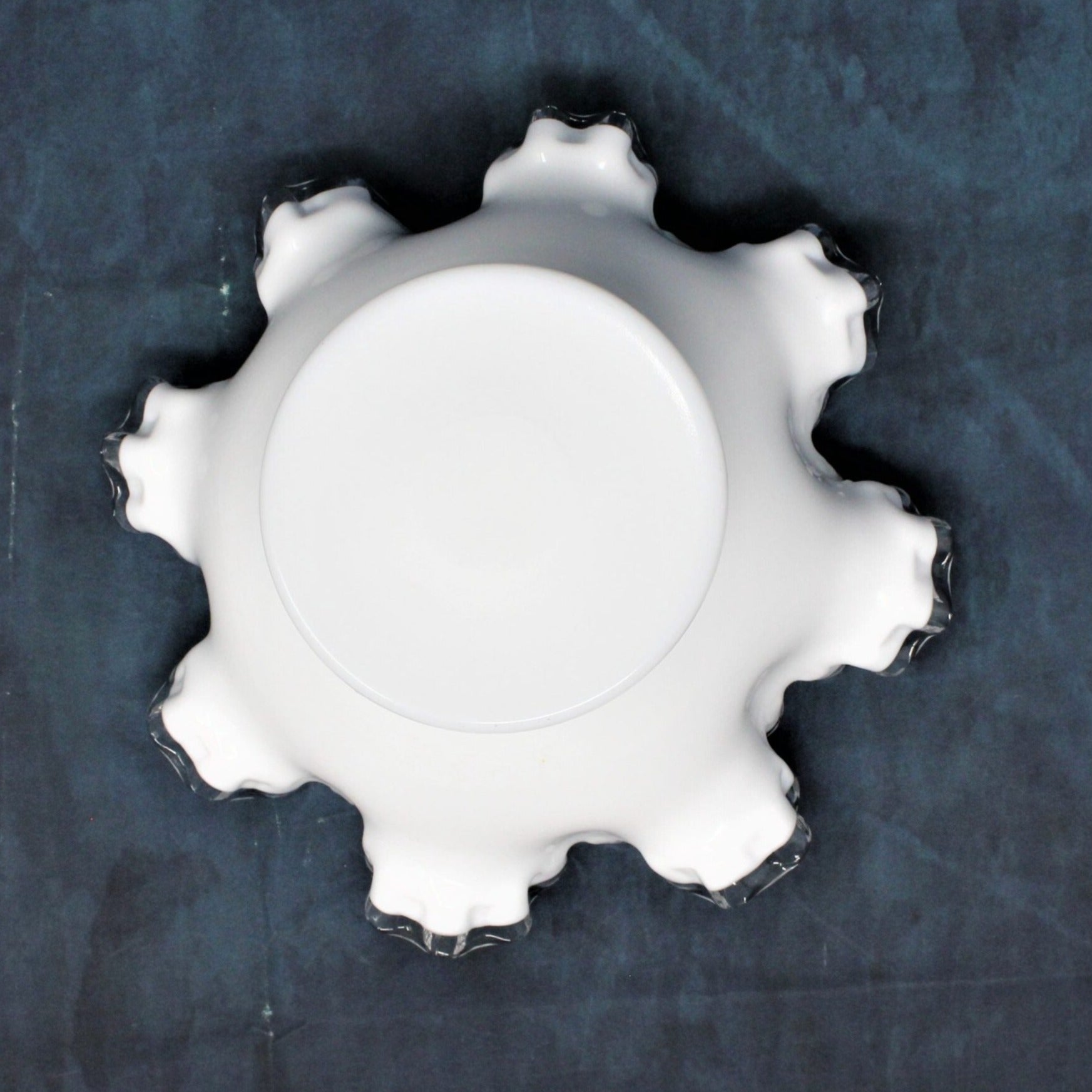 - Vintage Footed Bowl, Comport / Compote, Fenton Silver Crest Double Crimped, Pedestal Milk Glass, Elegant, Weddings / Bridal Shower Decor, Vintage Collectibles, (Discontinued)