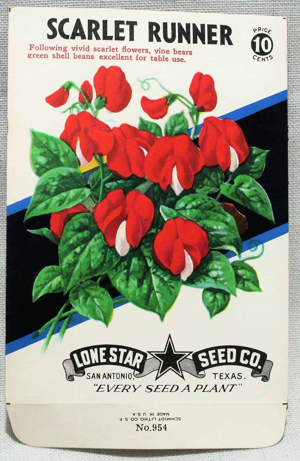 Seed Packets, Lone Star Seed Co, Scarlet Runner, NOS, Vintage