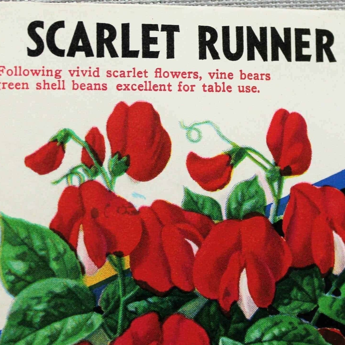 - Details: Brilliantly Colored Red Scarlet Runner Seed Packet. These are old stone lithographs done by Schmidt Litho Company in San Francisco. The beautiful images on the envelopes were printed in the 1940's with price and descriptions left blank. The pricing and descriptions were added to these in the 1950's. The colors are unbelievable beautiful. We also offer 4 seed packets of your choice, mounted in country/farmhouse aesthetic wood frames, (SEE PICTURES). If interested, please refer to those listings for pricing and details. If you're a seed packet collector, this is a wonderful way to display your collection and change it with the seasons!
