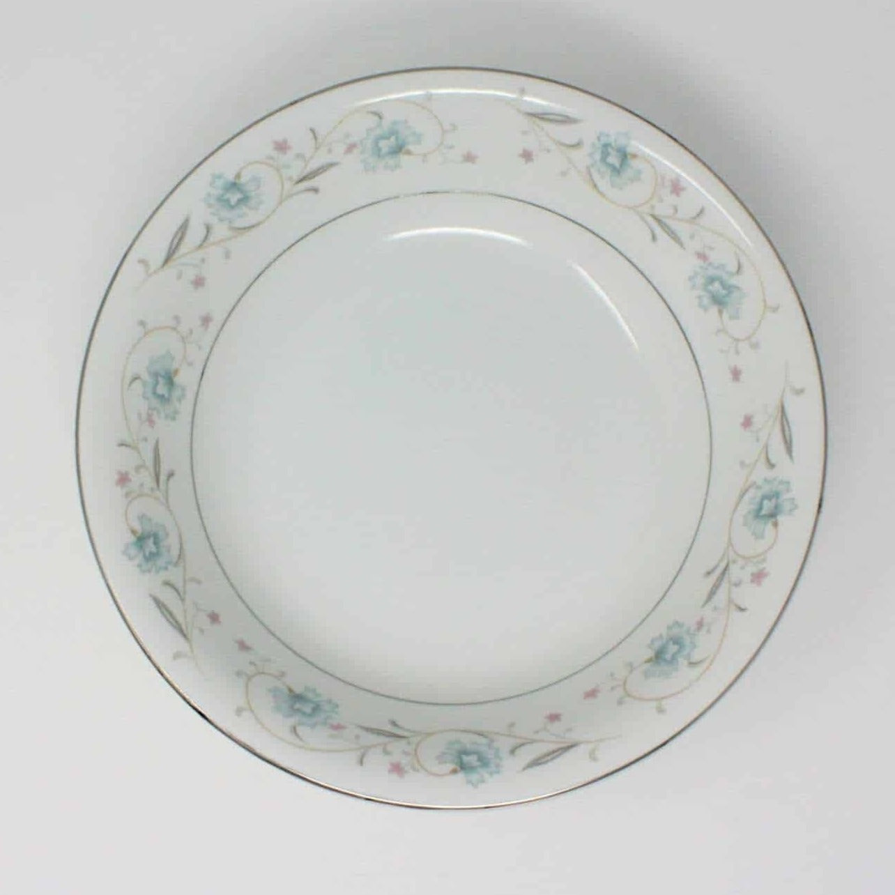- Vintage Serving Bowl, English Garden Pattern, Platinum, Mid Century Tableware, Blue & White, Serveware, (Discontinued)