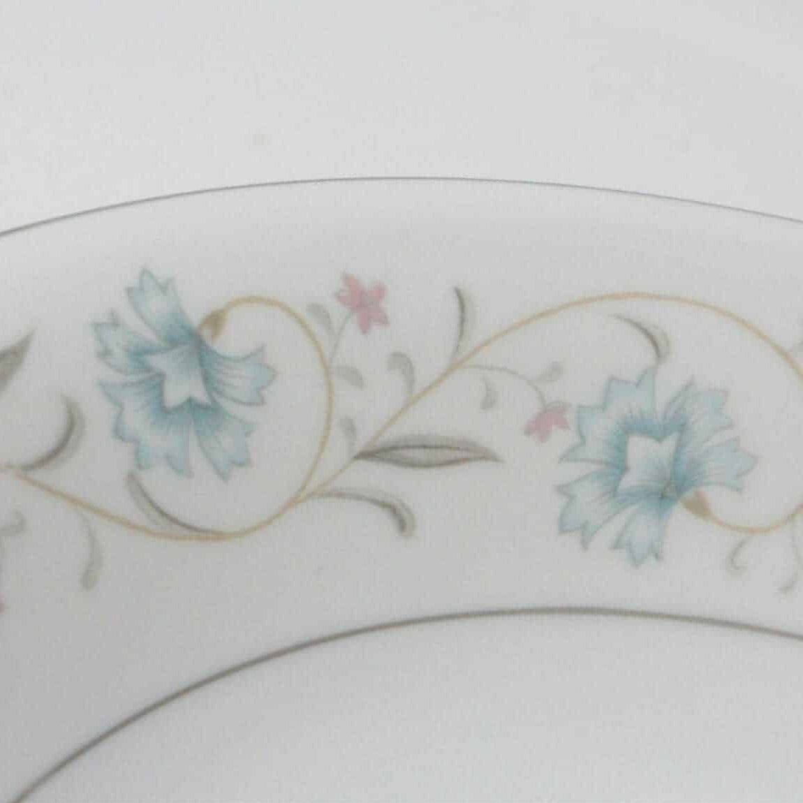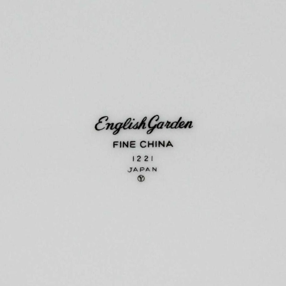- Details: This is beautiful pattern by Fine China of Japan called "English Garden". It has blue flowers with smaller pink flowers and gray leaves with a platinum rim and other accents also in platinum. This pattern is beautiful in it's simplicity with soft colors and gentle swirls of flowers all around. Will be an enhancement to many table settings or for those who love to mix and match patterns, would look great with blue, gray or pink china and/or stemware. We carry a few other pieces in this pattern, please search the site for 'English Garden' to view all. If you are collecting the English Garden pattern, we hope this is a welcome addition, or that one missing piece that will complete your set.