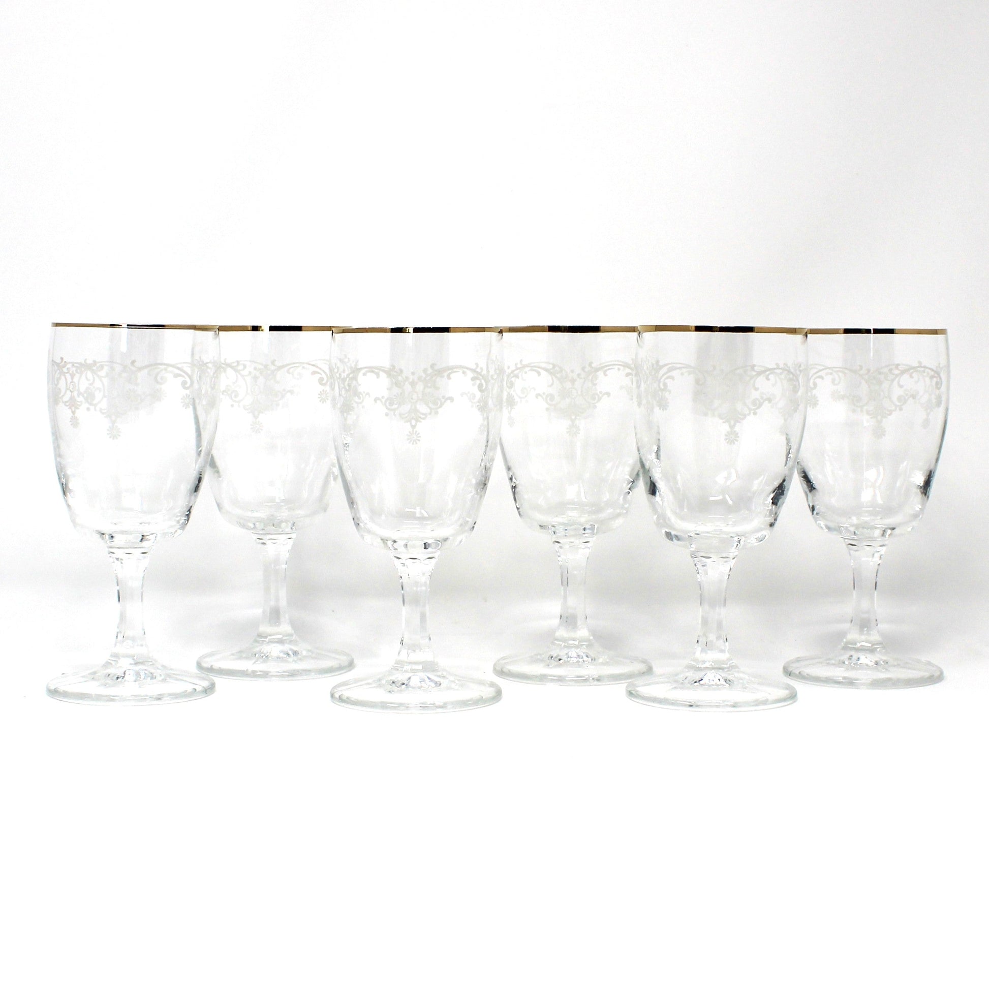- Vintage Wine Glasses, Claret Wine, Elegant Garland Enamel Design and Gold Rims, Set of 6, Elegant Barware, Stemware, Drinkware, (Discontinued)
