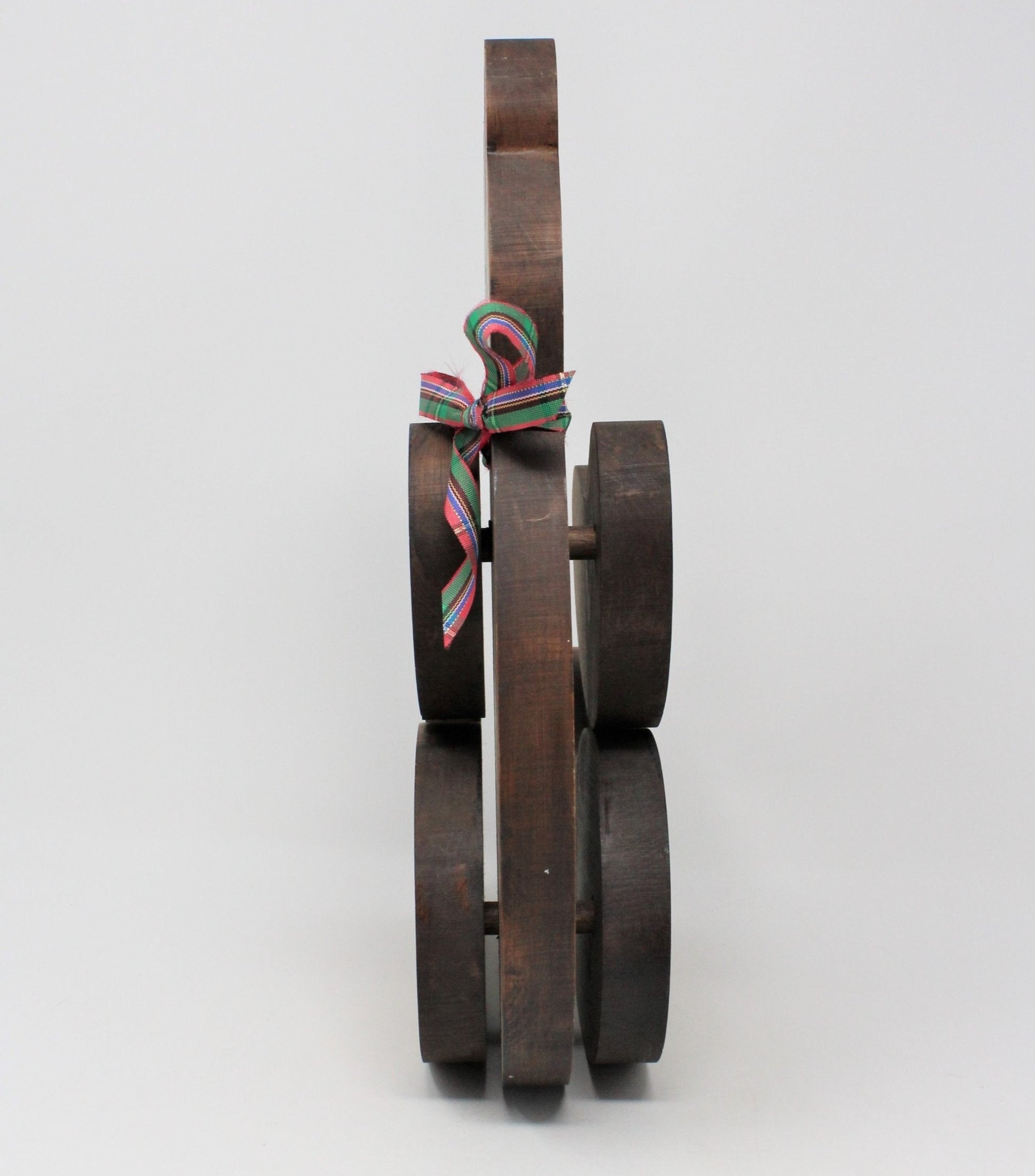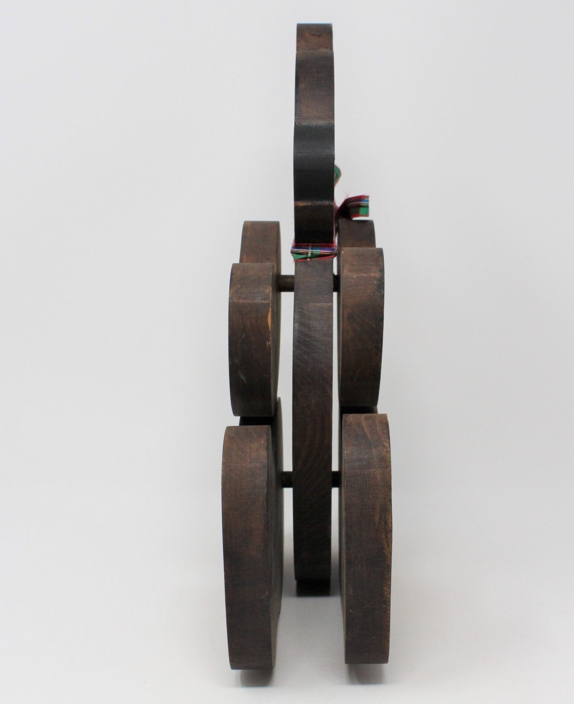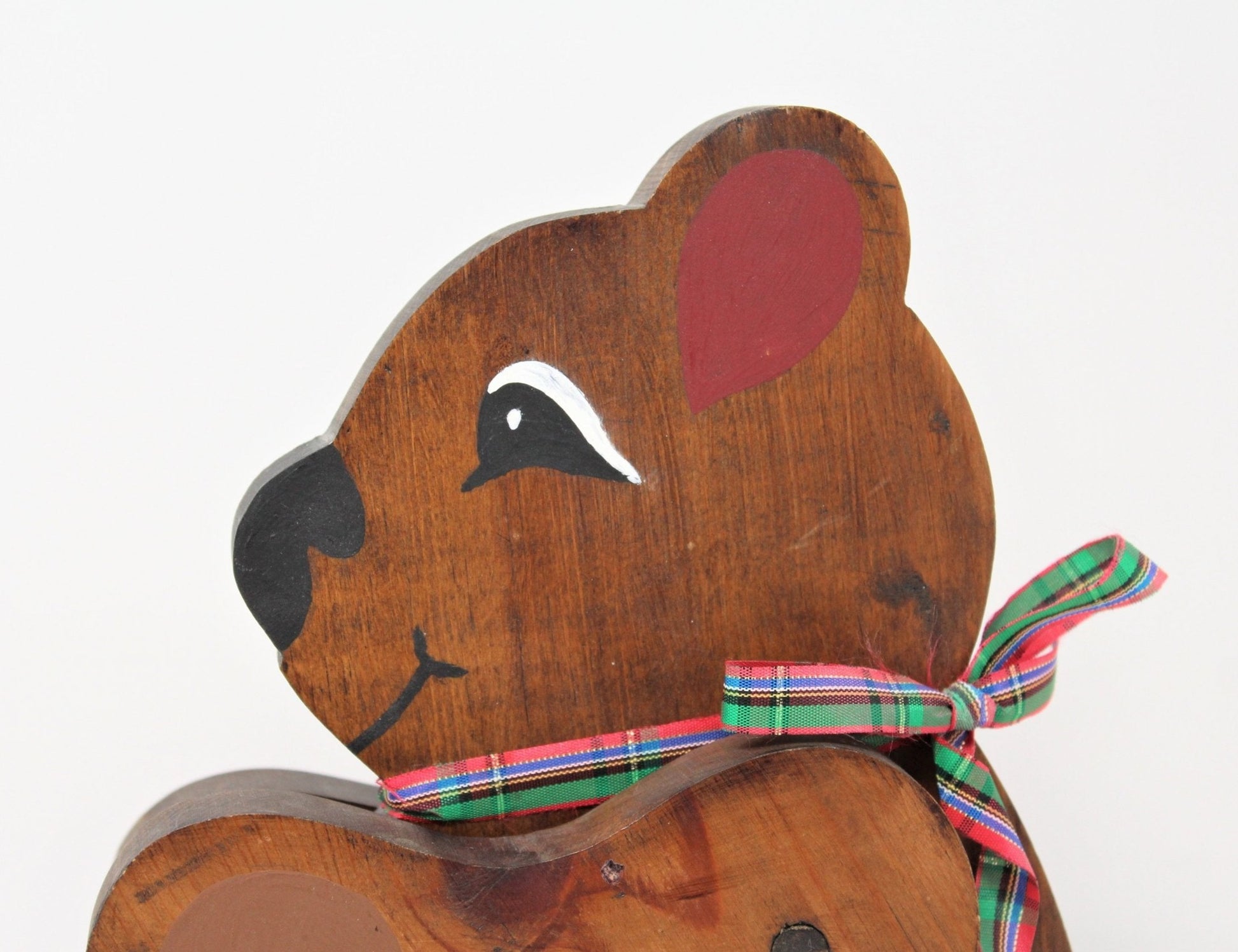 - Details: This is a sweet brown wood Teddy bear, all dressed up in his plaid bow! Hand painted and posable, it will be enjoyed for years to come. These types of posable peg shapes are very popular during the holidays and have become a tradition in many homes. Would make a great addition in a child's bedroom or playroom. Perfect in a cottage, country or farmhouse style decor. Great way to introduce children to the value and beauty of vintage items.